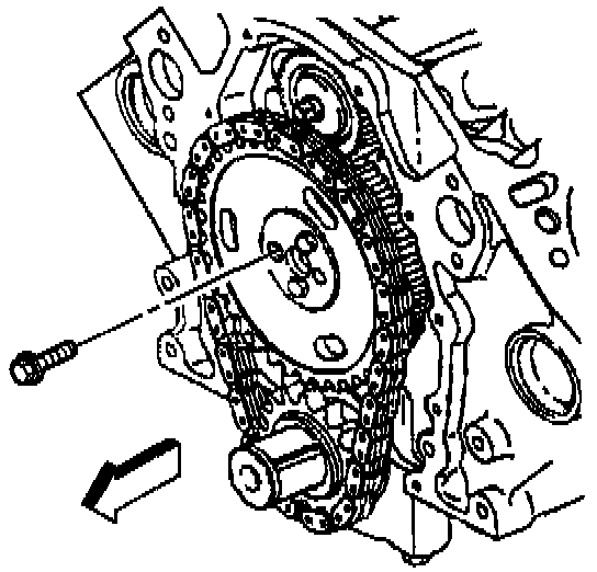 6. Install the camshaft sprocket and the camshaft timing chain.