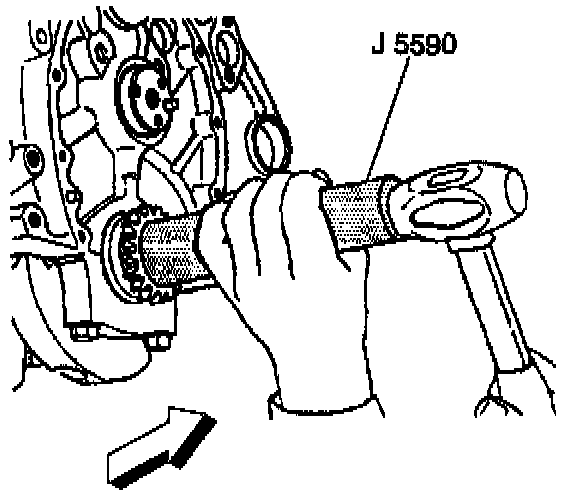 3. Use the J 5590 and a hammer in order to install the crankshaft sprocket.