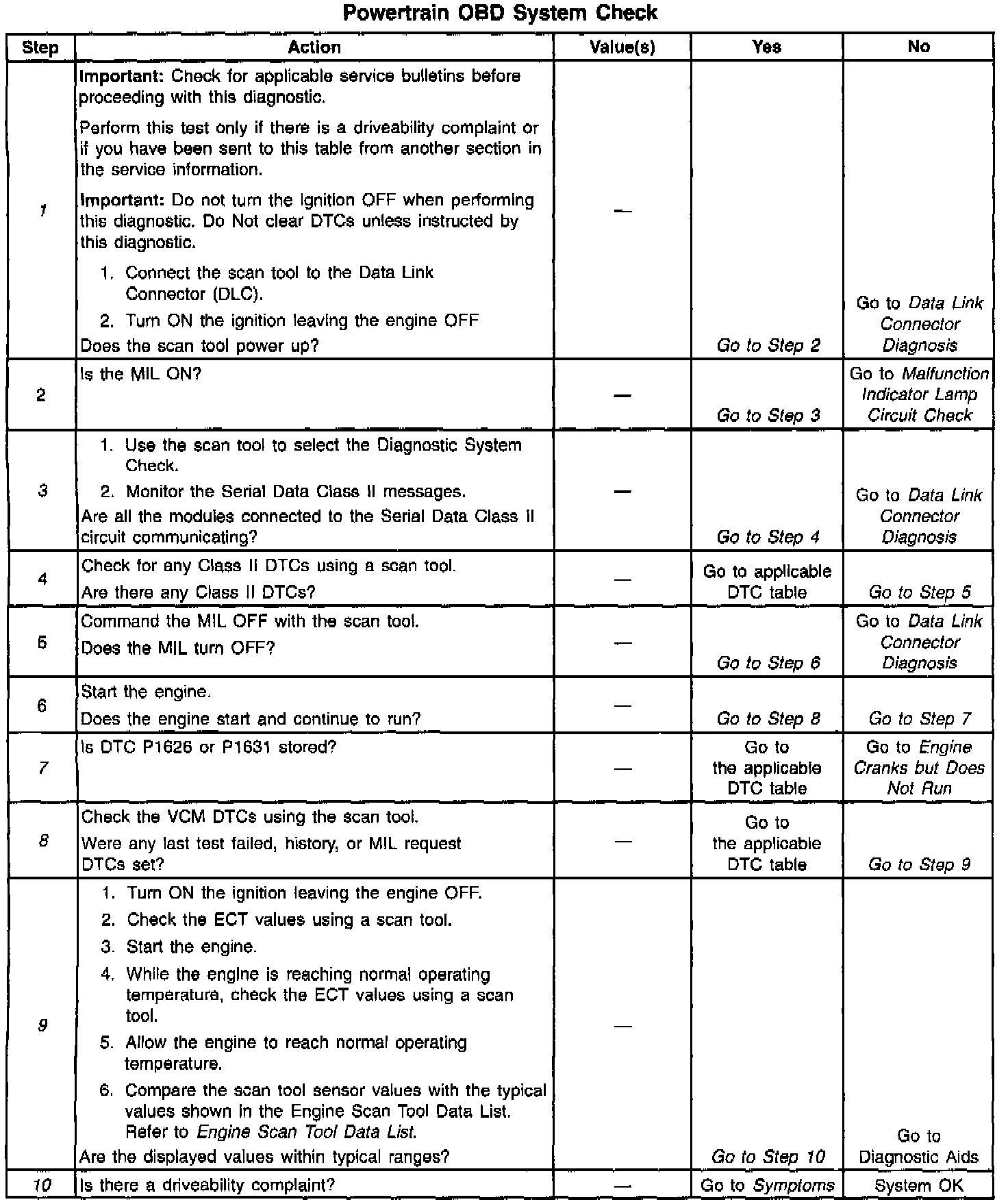 Understanding the table properly reduces the diagnostic time. Proper use of the OBD helps prevent the unnecessary replacement of good parts.