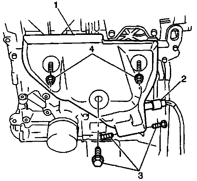 3. Secure the heat shield with three bolts and two nuts. Tighten the heat shield nuts and bolts to 15 Nm (11 lb ft).