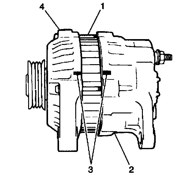 2. Scribe matchmarks (3) on the front (4) and rear housing (2) to ensure proper assembly.