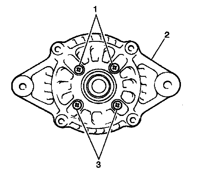 10. Remove the four screws (1, 3), the front bearing retainer and the front bearing from the front housing.
