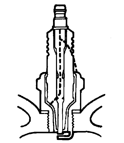 Heat shock breakage in the lower insulator tip generally occurs during severe engine operating conditions such as higher RPM or heavy loading. Overadvanced timing or low grade fuels may also cause heat shock breakage. Always replace park plugs with broken or cracked insulators.