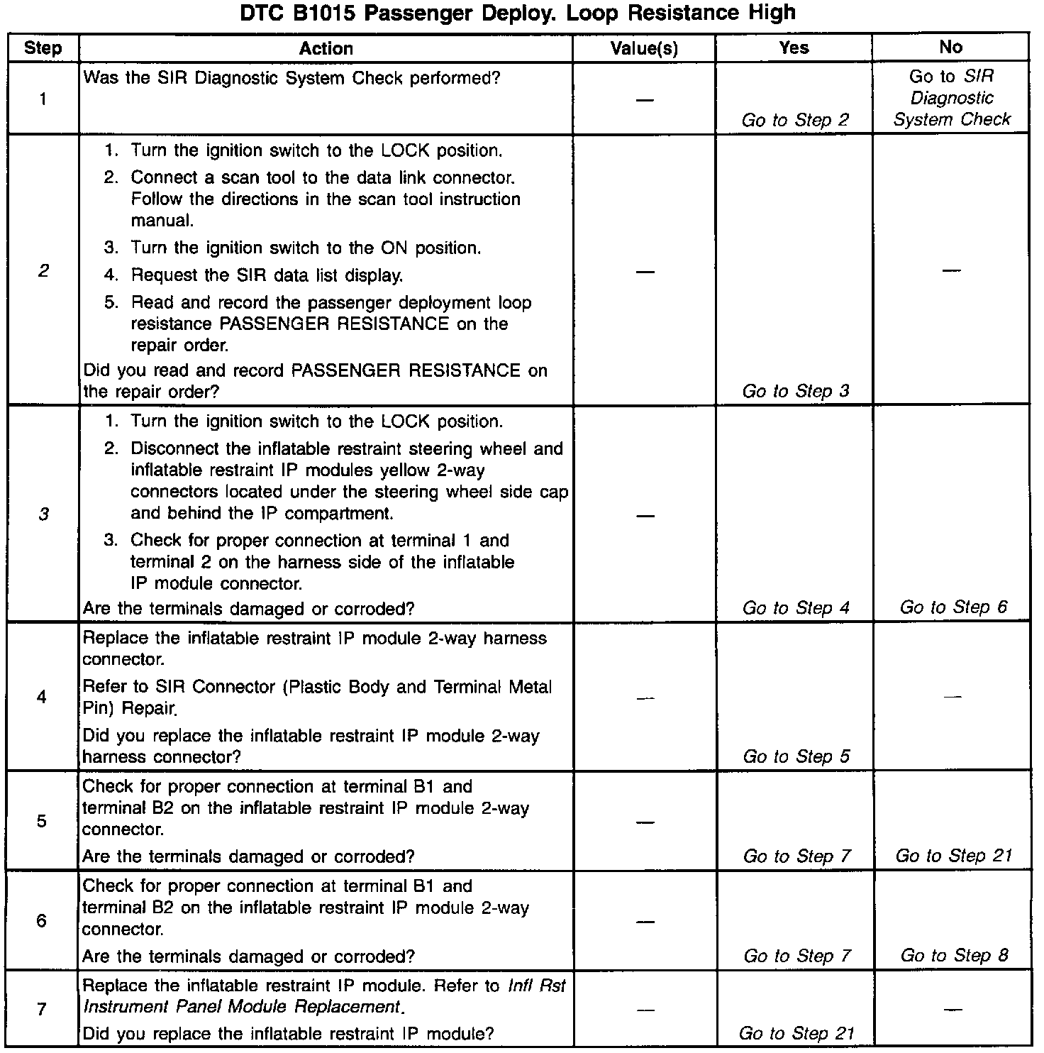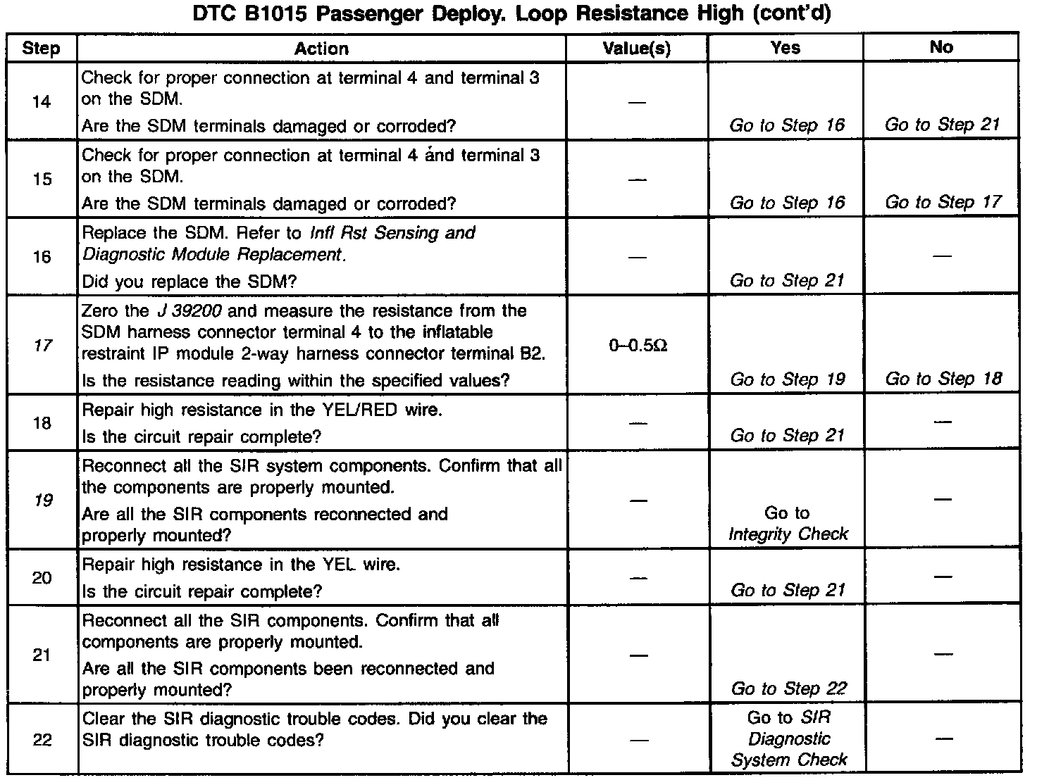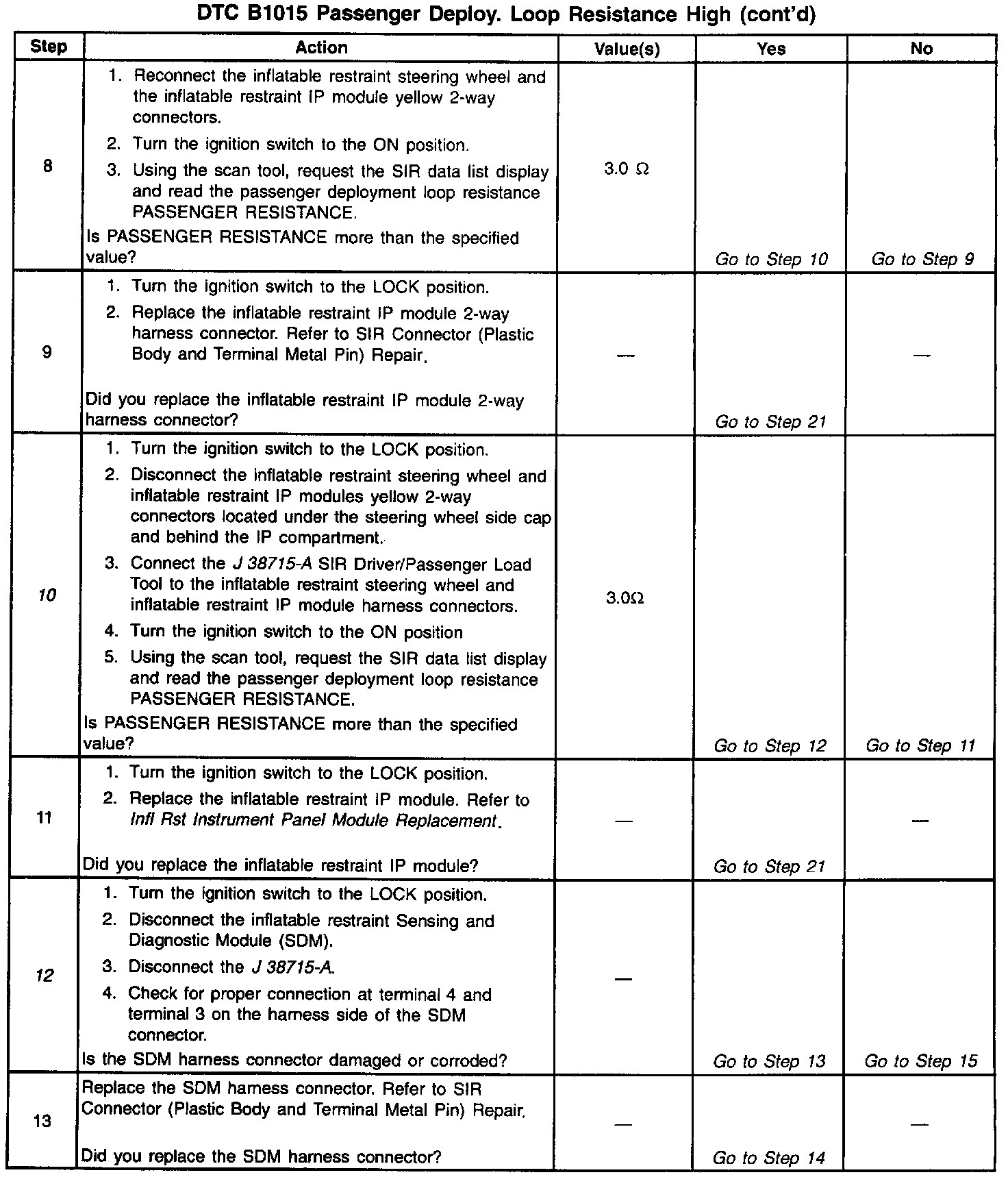 ^ Clear the Current DTC when the resistance of the passenger deployment loop is less than 3.0 ohms and the ignition switch is cycled.
