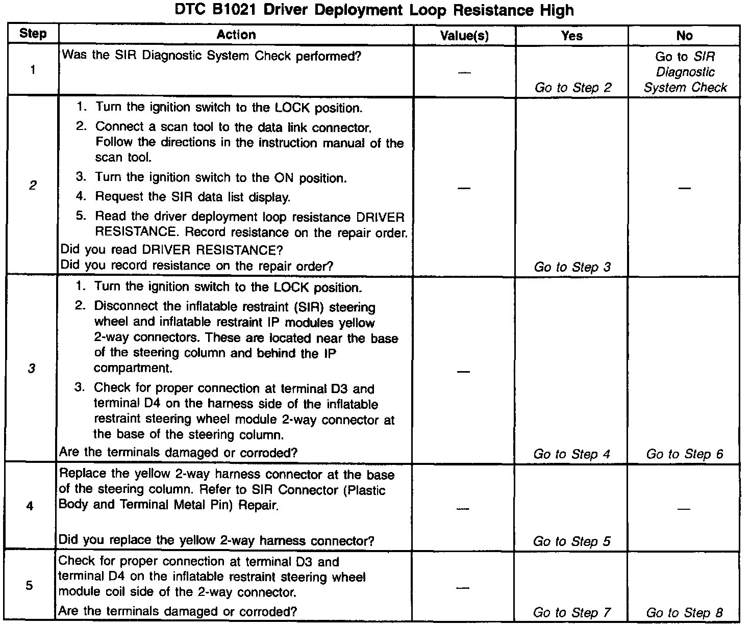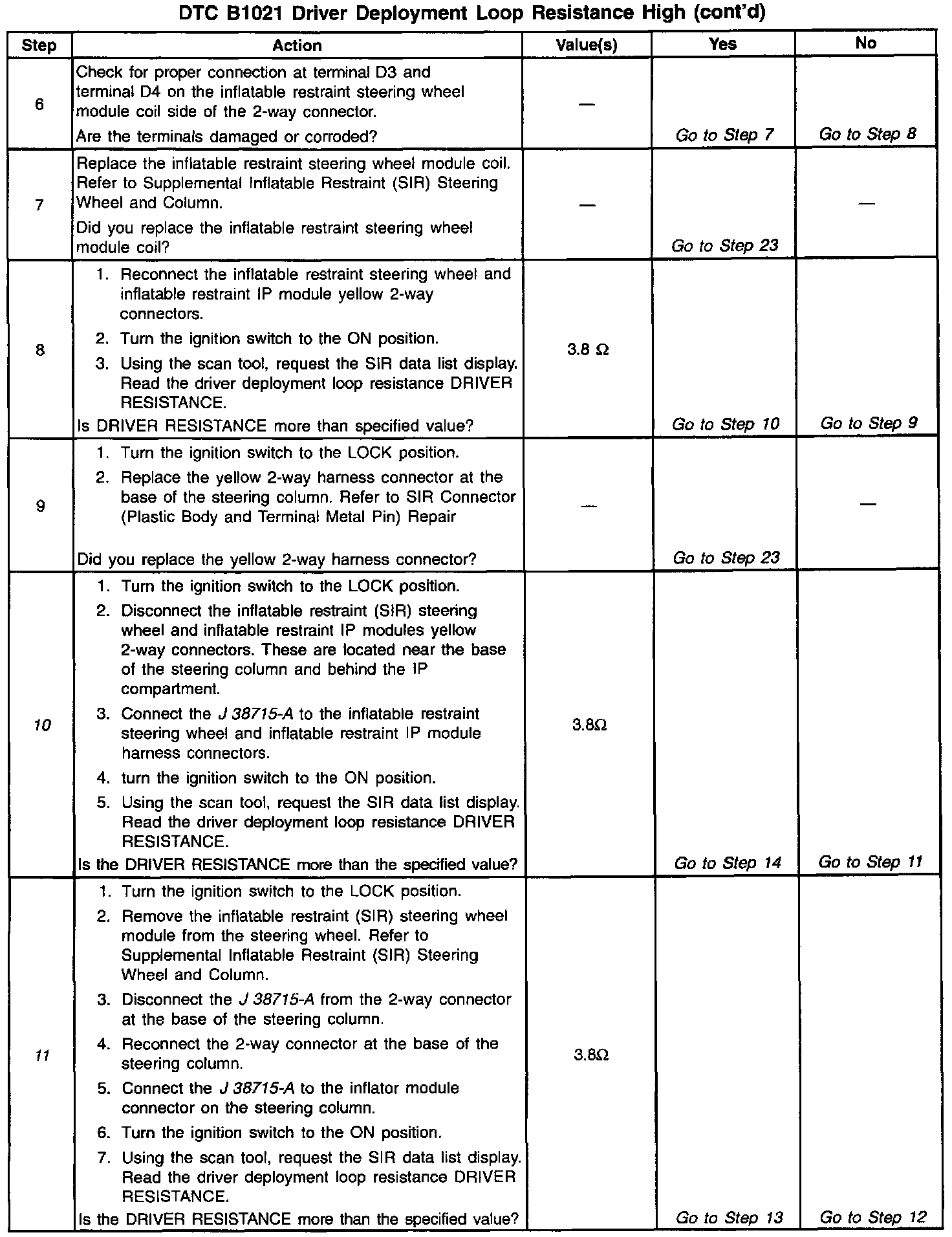 ^ Clear the Current DTC when the resistance of the driver deployment loop is less than 3.8 ~ and the ignition switch is cycled.