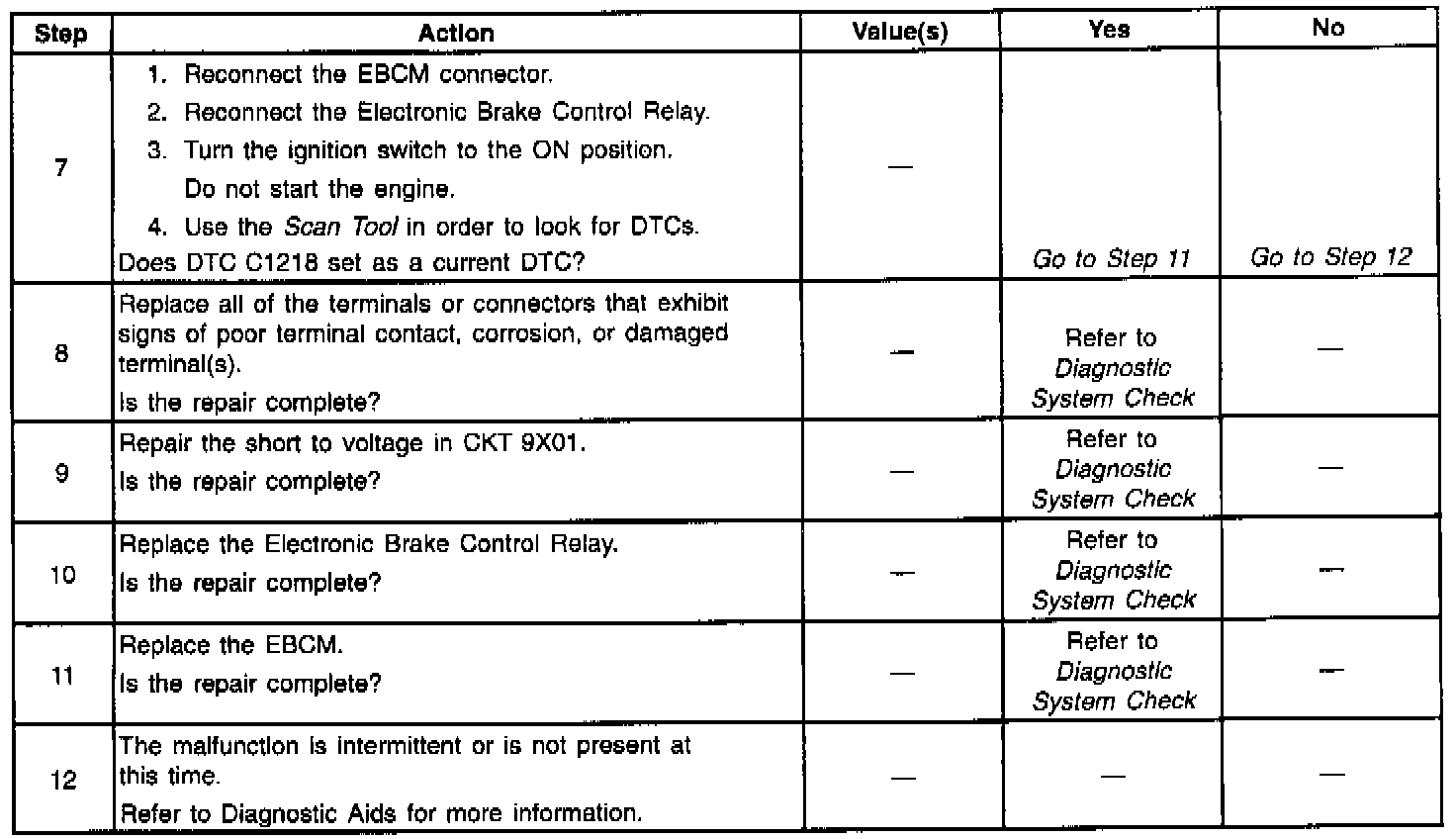 - DTC C1218 can set after the EBCM commands the Electronic Brake Control Relay ON.