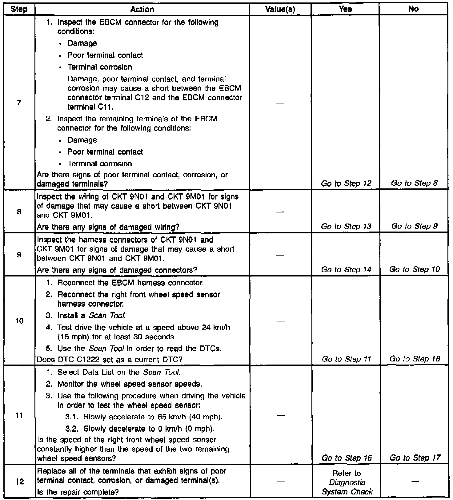 DTC C1222 sets when the vehicle is not in an Antilock Brake System (ABS) stop.