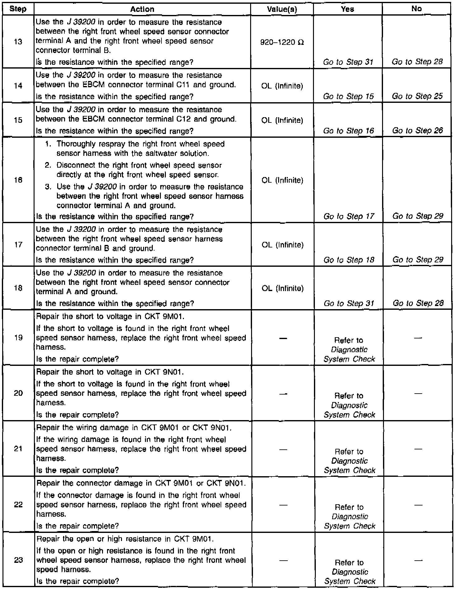 IMPORTANT: Difficulty may occur when trying to locate intermittent malfunctions in the wheel speed sensor circuit.