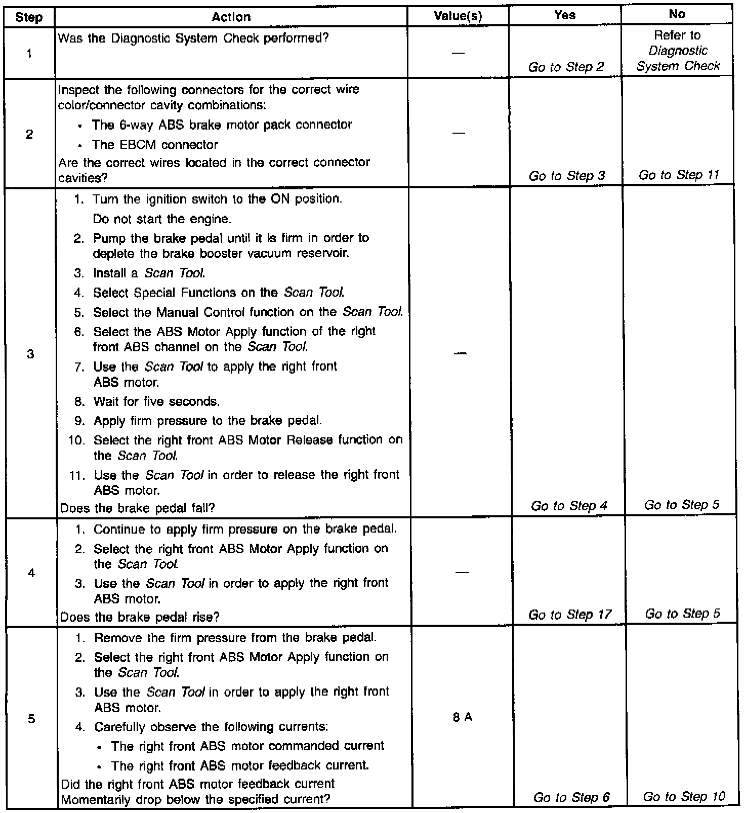 A malfunction exists if the Electronic Brake Control Module (EBCM) detects a condition in which the EBCM cannot move the ABS motor in either direction.