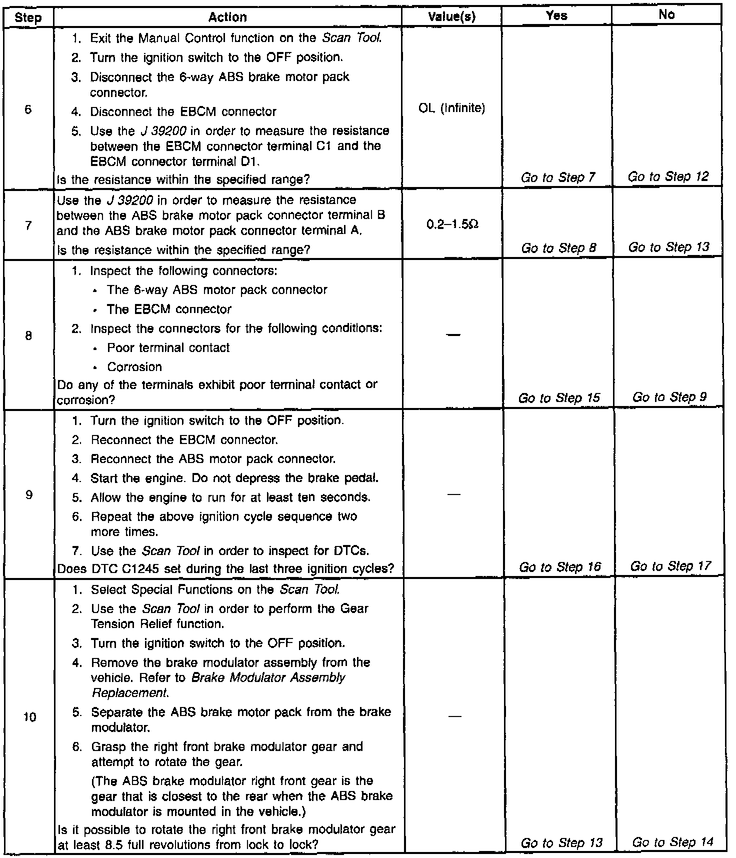 Use the enhanced diagnostic function of the Scan Tool in order to measure the frequency of the malfunction. DTC C1245 may set after modulator disassembly if the modulator pistons are positioned at the bottom of the modulator piston bore.