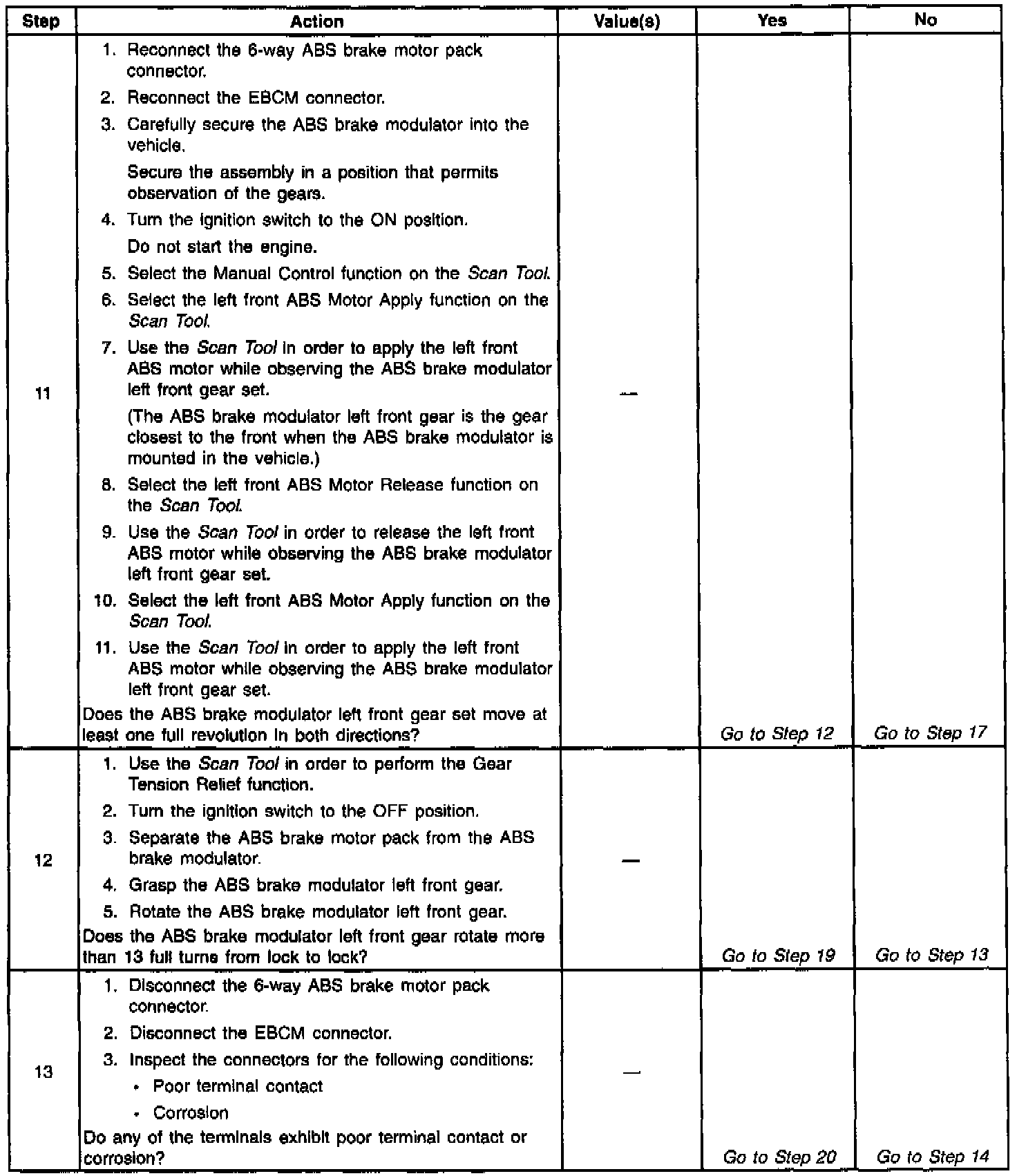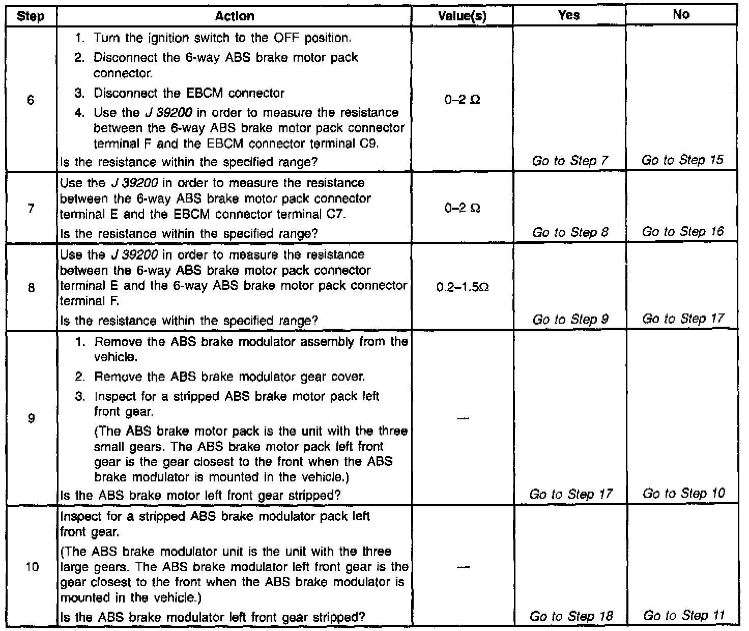 Diagnostic Trouble Code (DTC) C1247 detects a stripped nut or gear assembly during initialization. During the homing sequence, the piston should reach the top of the bore. Then the Antilock Brake System (ABS) motor stalls. If the ABS motor does not stall, the ABS motor must be spinning with little or no resistance. This indicates a nut/screw or gear malfunction.