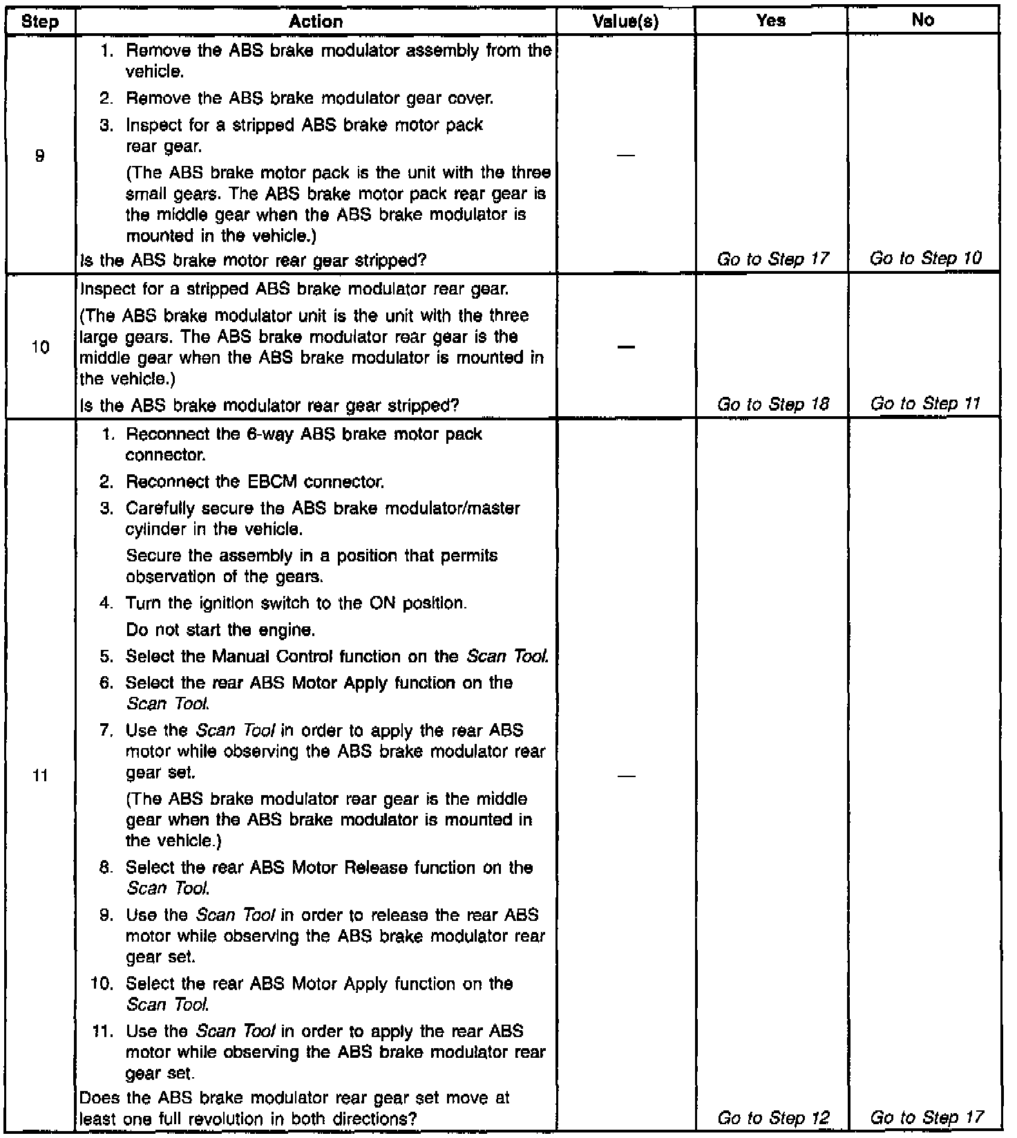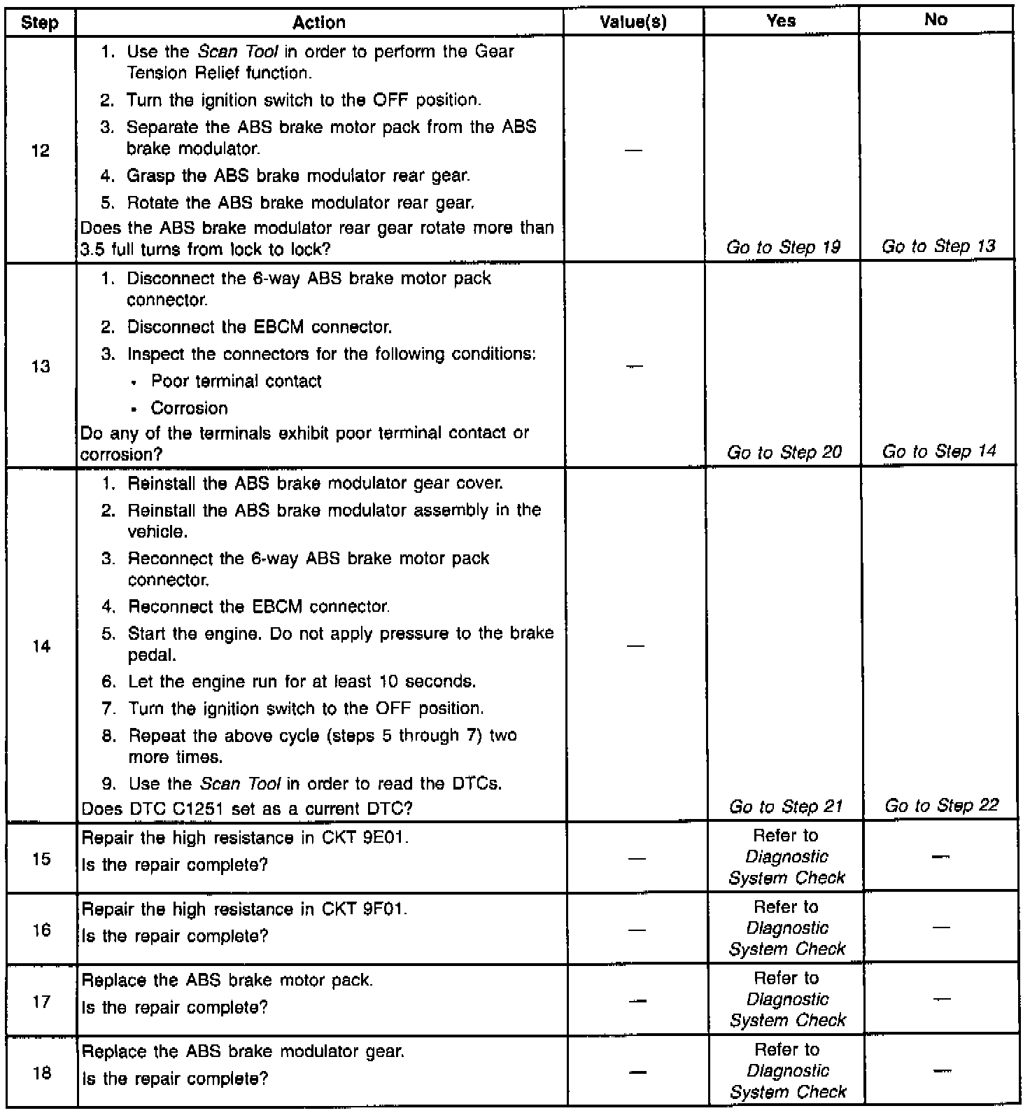 Diagnostic Trouble Code (DTC) C1251 detects a stripped nut or gear assembly during initialization. During the homing sequence, the piston should reach the top of the bore. Then the Antilock Brake System (ABS) motor stalls. If the ABS motor does not stall, the ABS motor must be spinning with little or no resistance. This indicates a nut/screw or gear malfunction.