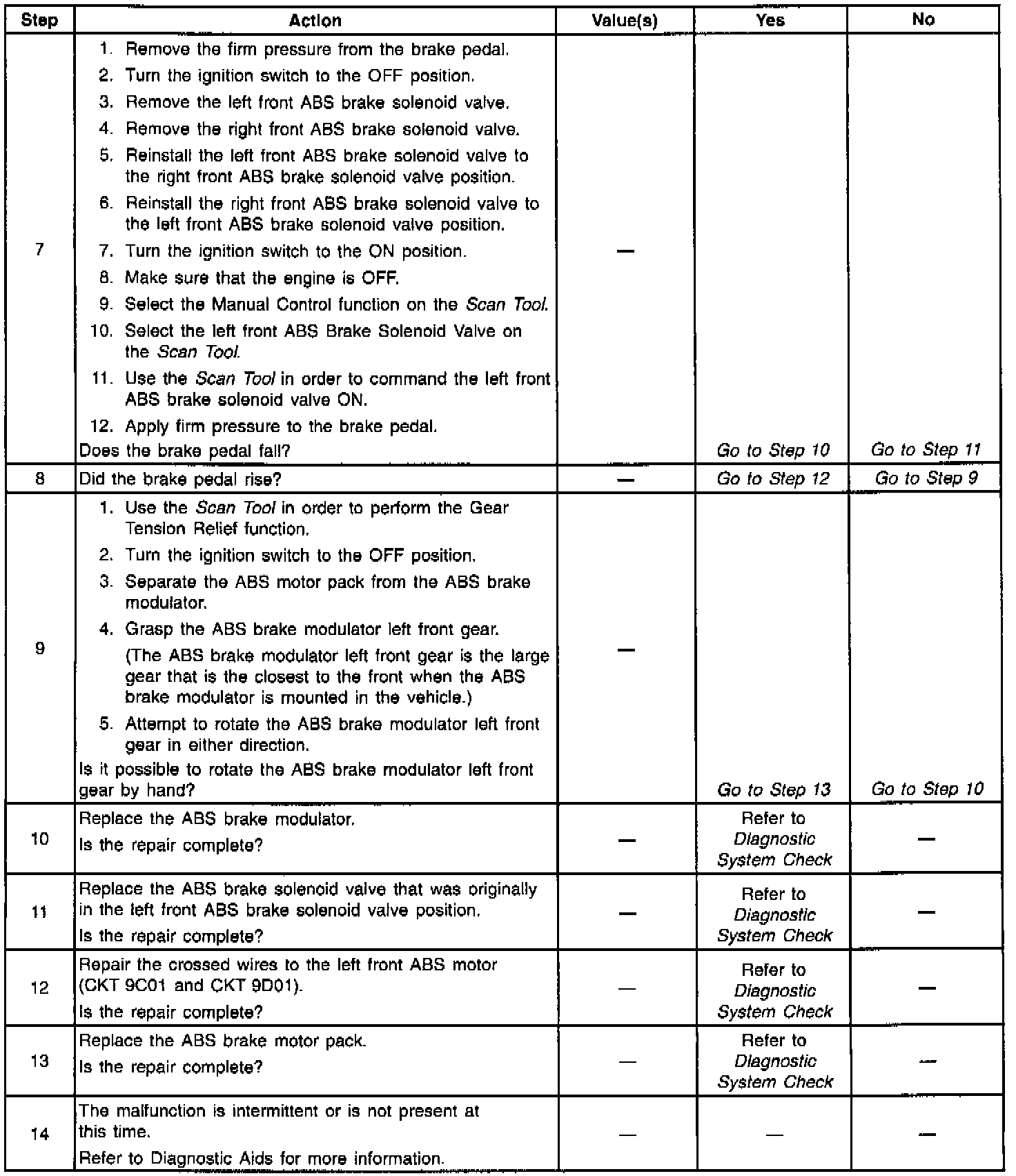 Use the enhanced diagnostic function of the Scan Tool in order to measure the frequency of the malfunction. DTC C1252 may occur if the vehicle is on ice and the steering wheel is turned to lock during braking. Use the scan tool hydraulic test to ensure the total brake system is functional.