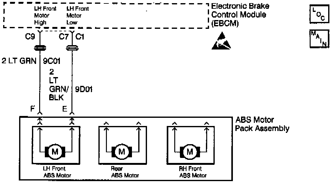 - A malfunction exists if the Electronic Brake Control Module (EBCM) detects an out of range voltage on either of the left front ABS motor circuits.