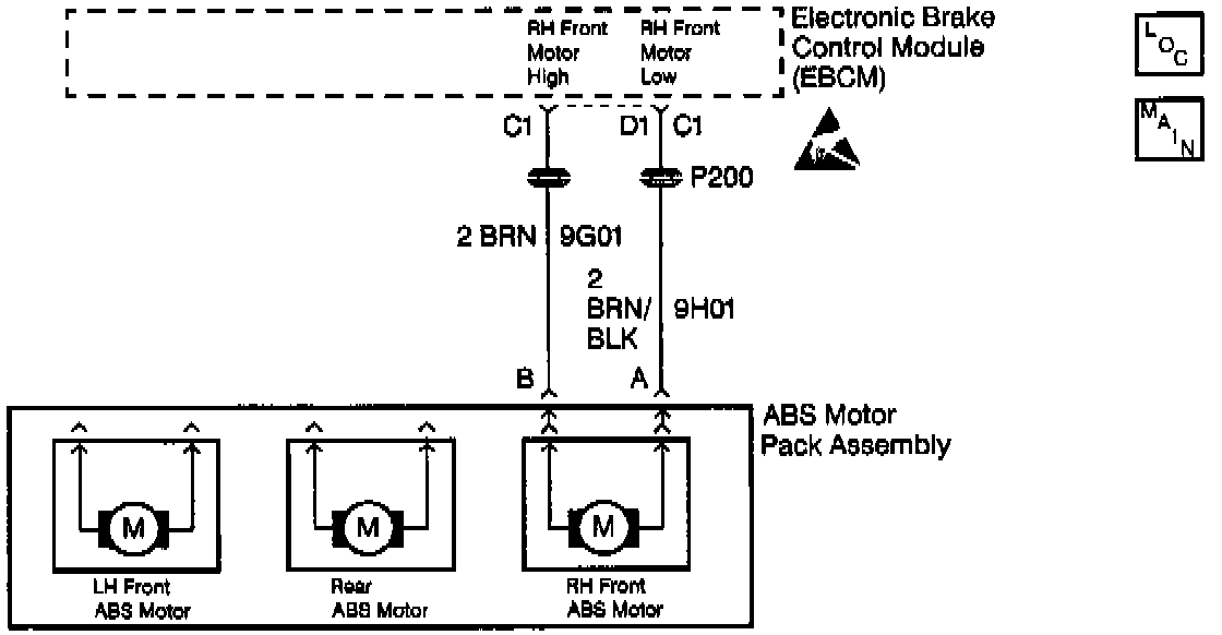 - A malfunction exists if the Electronic Brake Control Module (EBCM) detects an out of range voltage on either of the right front ABS motor circuits.