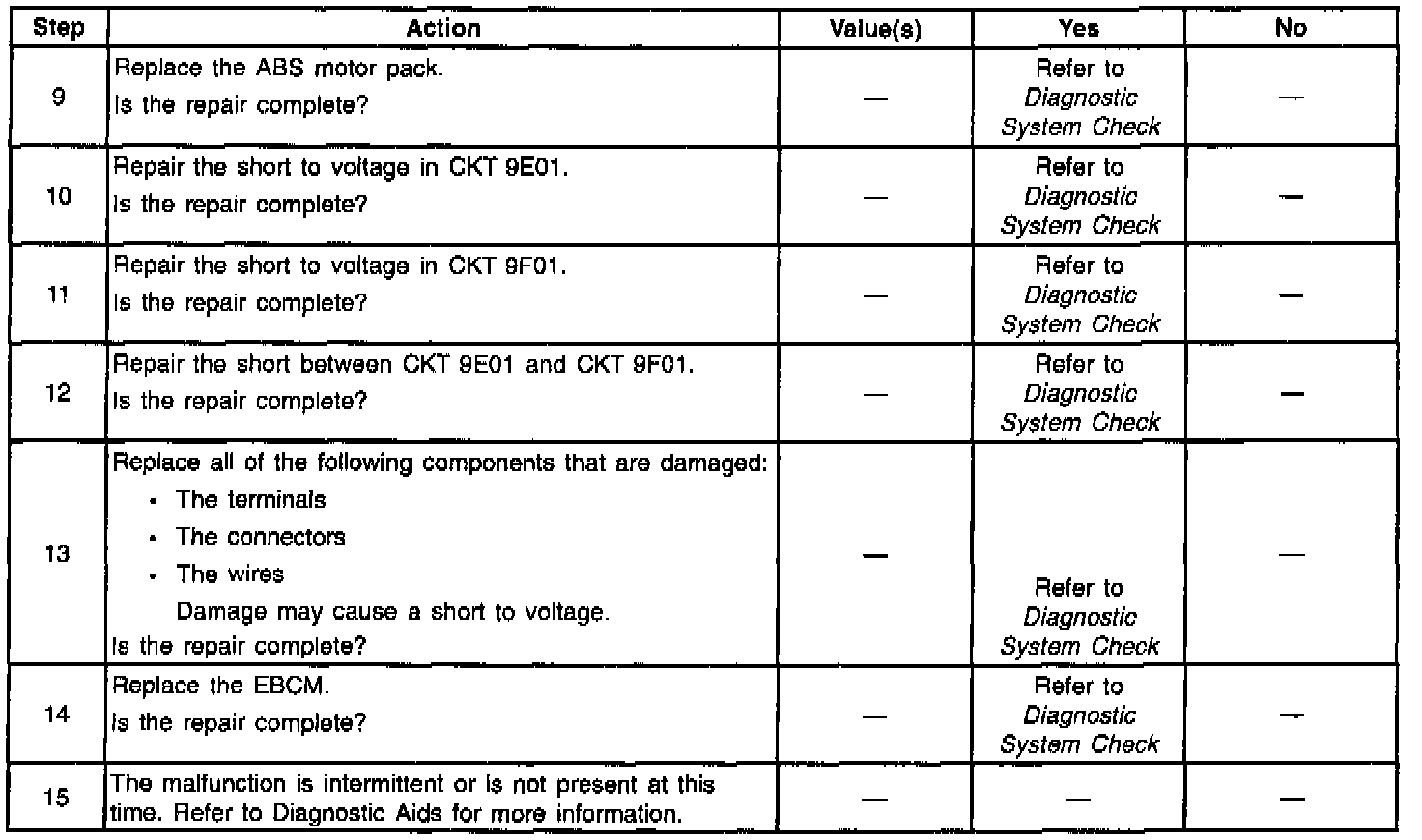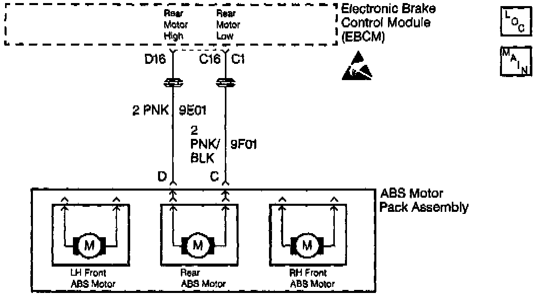 - A malfunction exists if The Electronic Brake Control Module (EBCM) detects an out of range voltage on either of the rear ABS motor circuits.