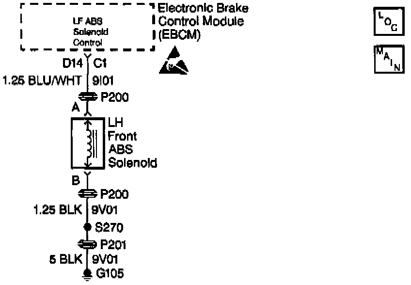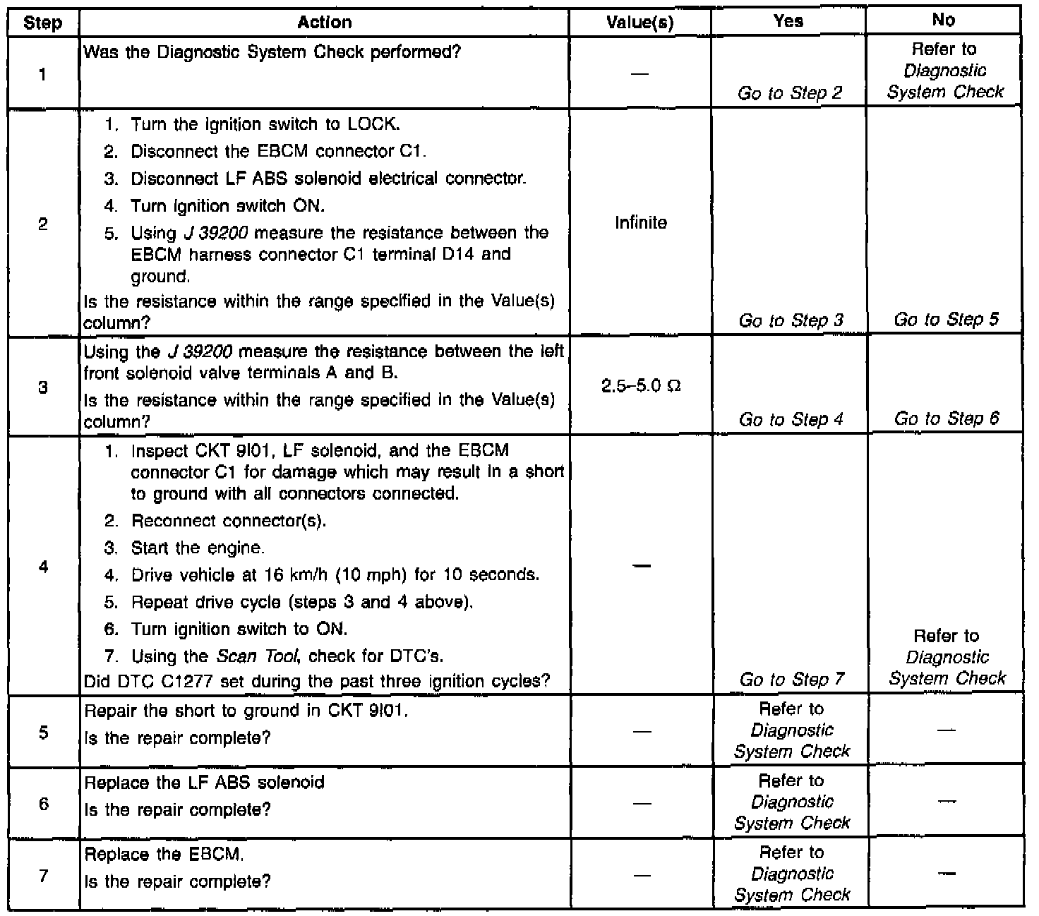 - The Electronic Brake Control Module (EBCM) identifies a situation in which the left front solenoid cannot be turned ON due to a short to ground in Circuit (CKT) 9101.