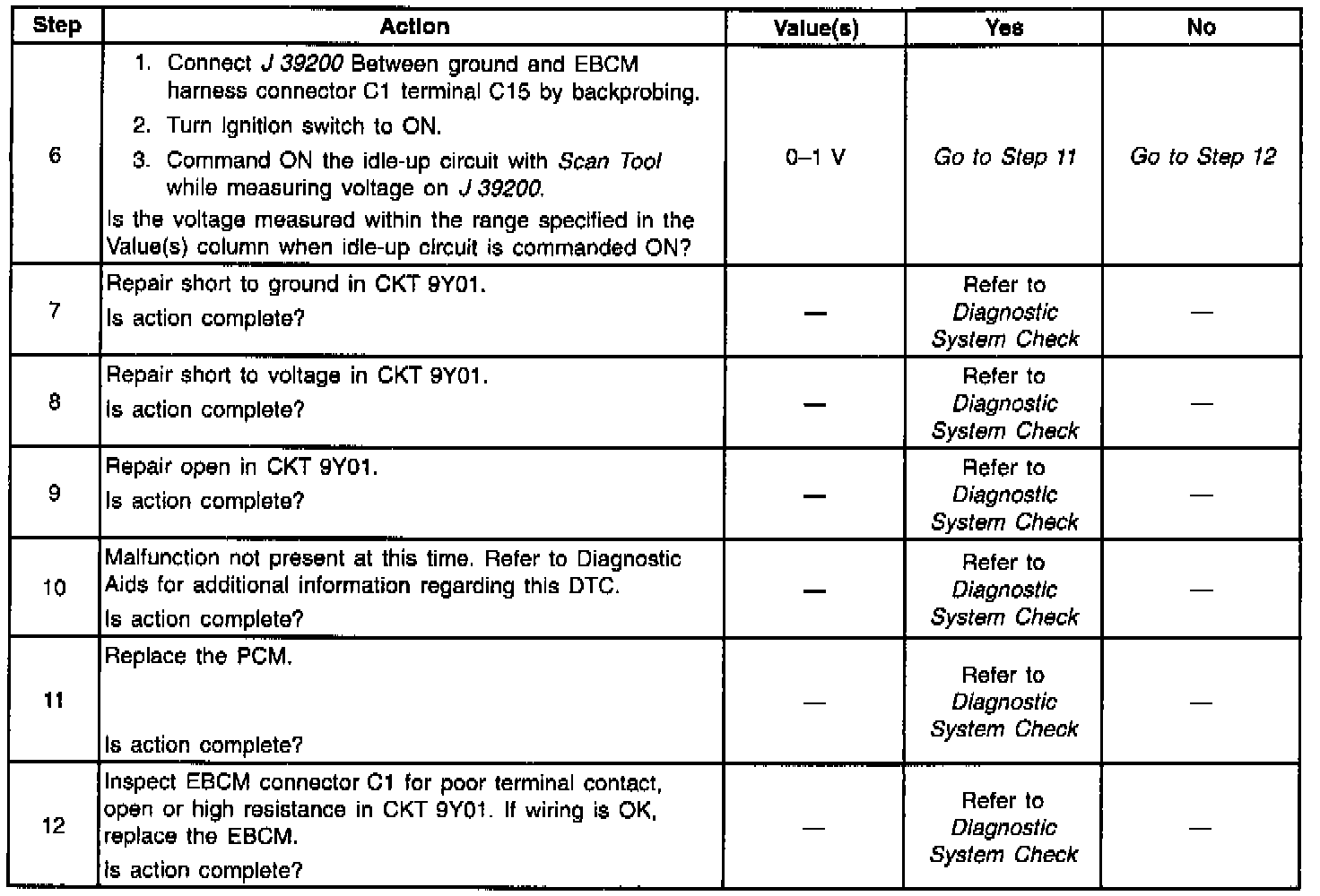 - The EBCM can detect a short to voltage in CKT 9Y01 only during the time that the EBCM is requesting the PCM to idle-up.