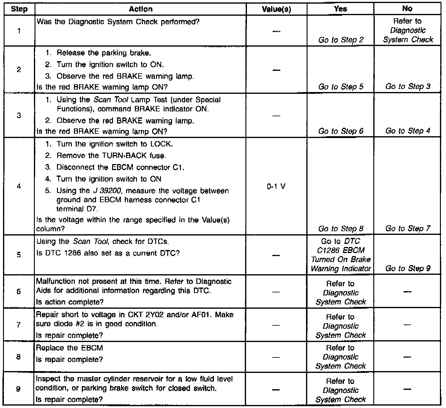 - This DTC can be set only when the EBCM turns ON the red BRAKE warning lamp.