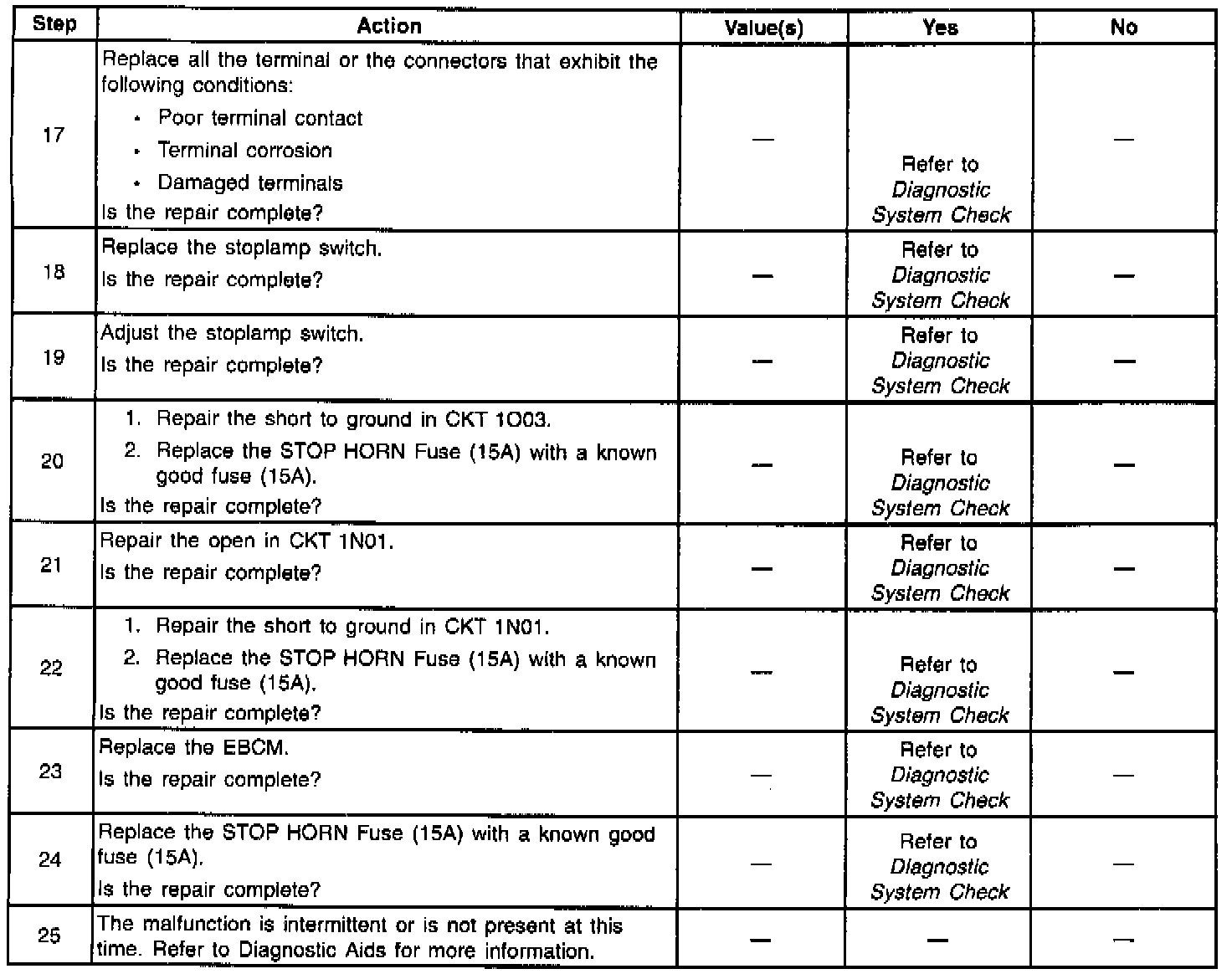 Thoroughly inspect any circuitry that may cause the intermittent complaint for the following conditions: