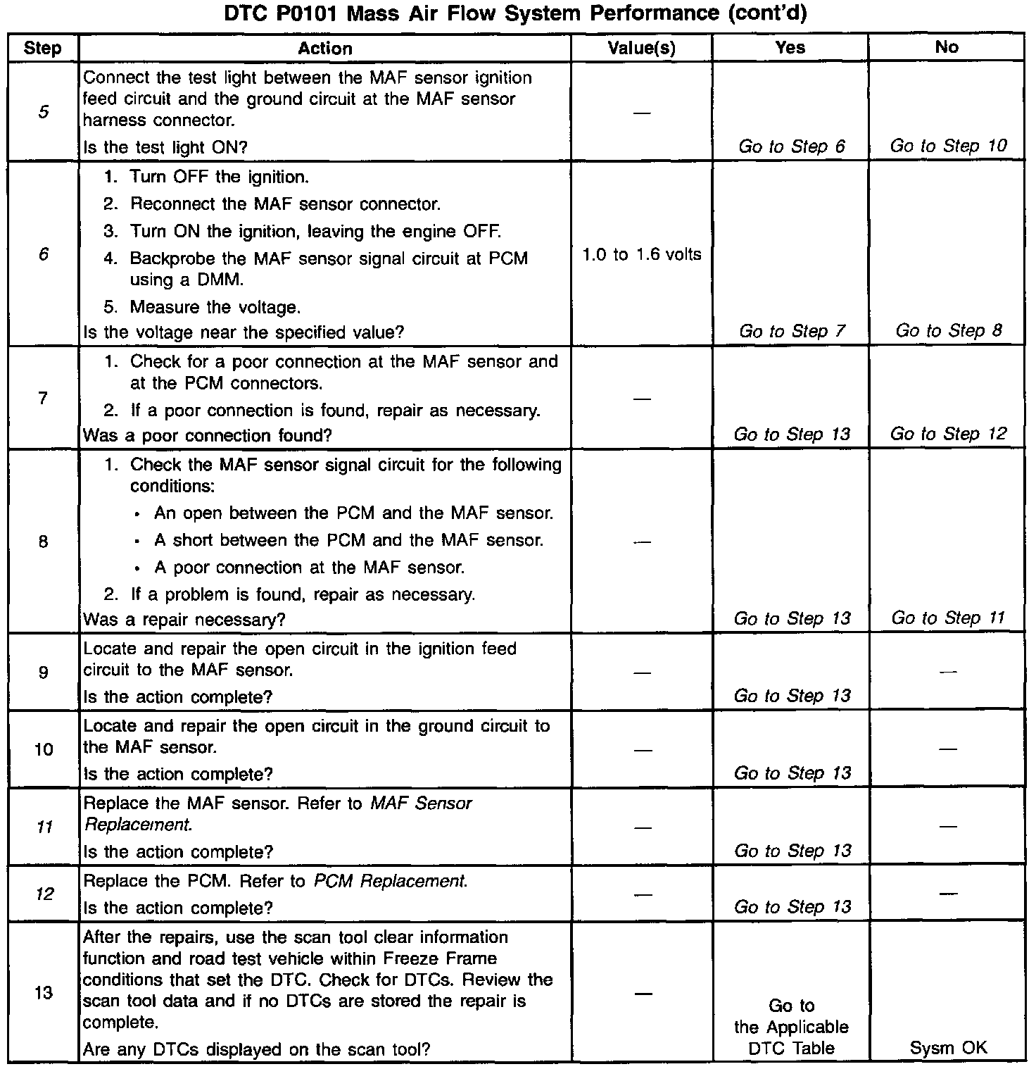 11. Before replacing the MAF sensor check Diagnostic Aids above for any conditions that might apply.