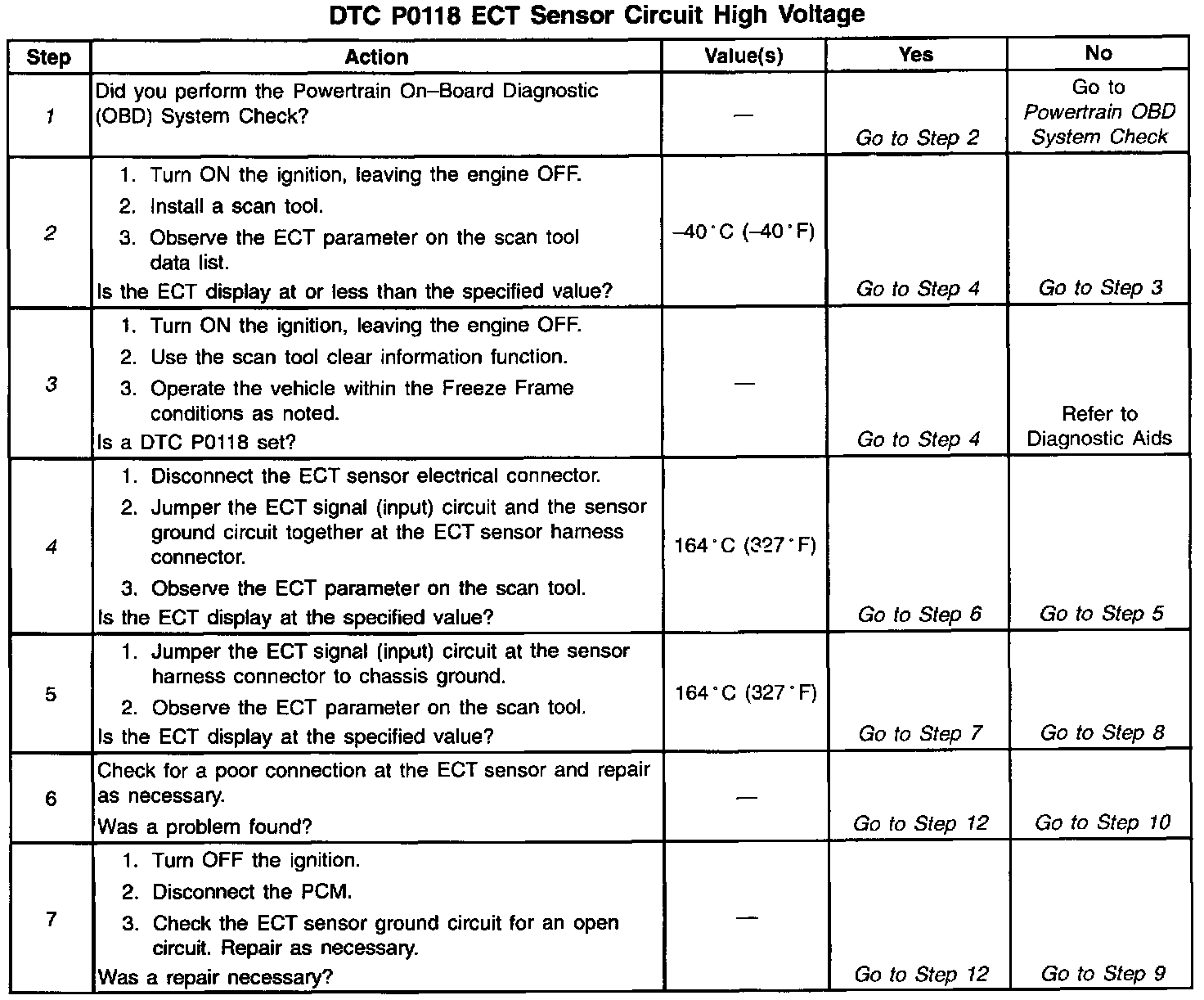 4. This step determines if the fault is caused by an open or shorted signal return circuit, a open in the ground circuit or by a malfunctioning ECT sensor.
