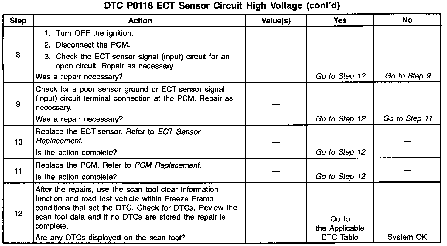 If the DTC P0118 cannot be duplicated, the information included in the Freeze Frame data can be useful in determining vehicle operating conditions when the DTC was first set.