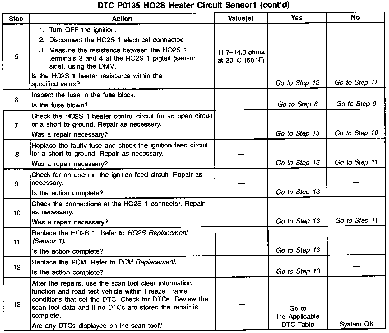 8. This step checks for a short to ground in the HO2S 1 heater circuit. If no problem is found in the HO2S 1 heater circuit the fault could be a bad (shorted) HO2S 1.