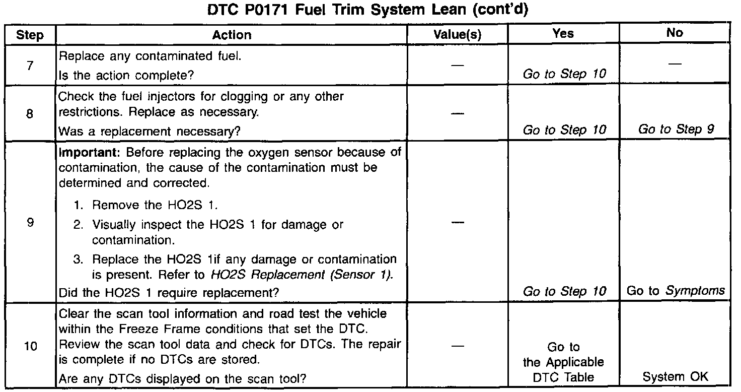 ^ Check for fuel contamination. Small amounts of water can be delivered to the fuel injectors and cause a lean exhaust indication. A lean exhaust indication can also be caused by too much alcohol in the fuel. Refer to Alcohol/Contaminants-in-Fuel Diagnosis.