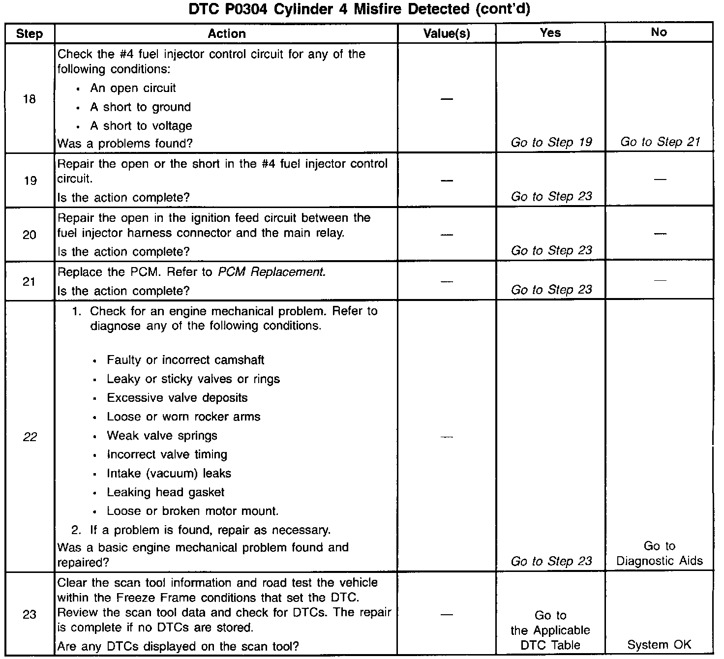 ^ An engine mechanical malfunction. Measure engine cylinder compression and valve lash adjustment for comparison to manufacture specifications. Refer to Engine Mechanical.