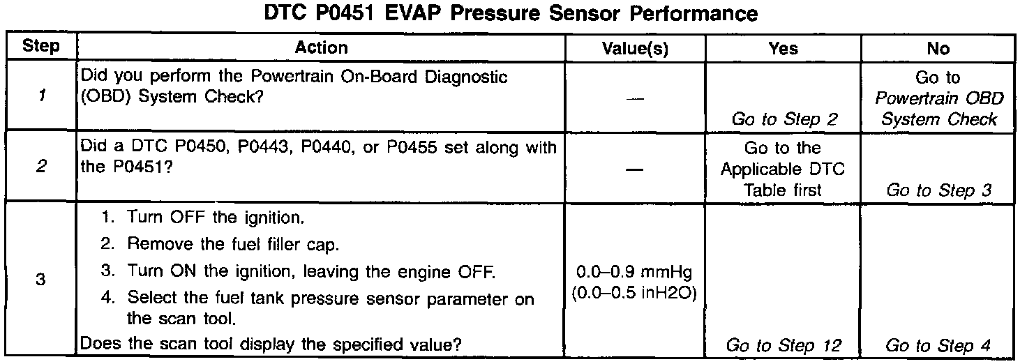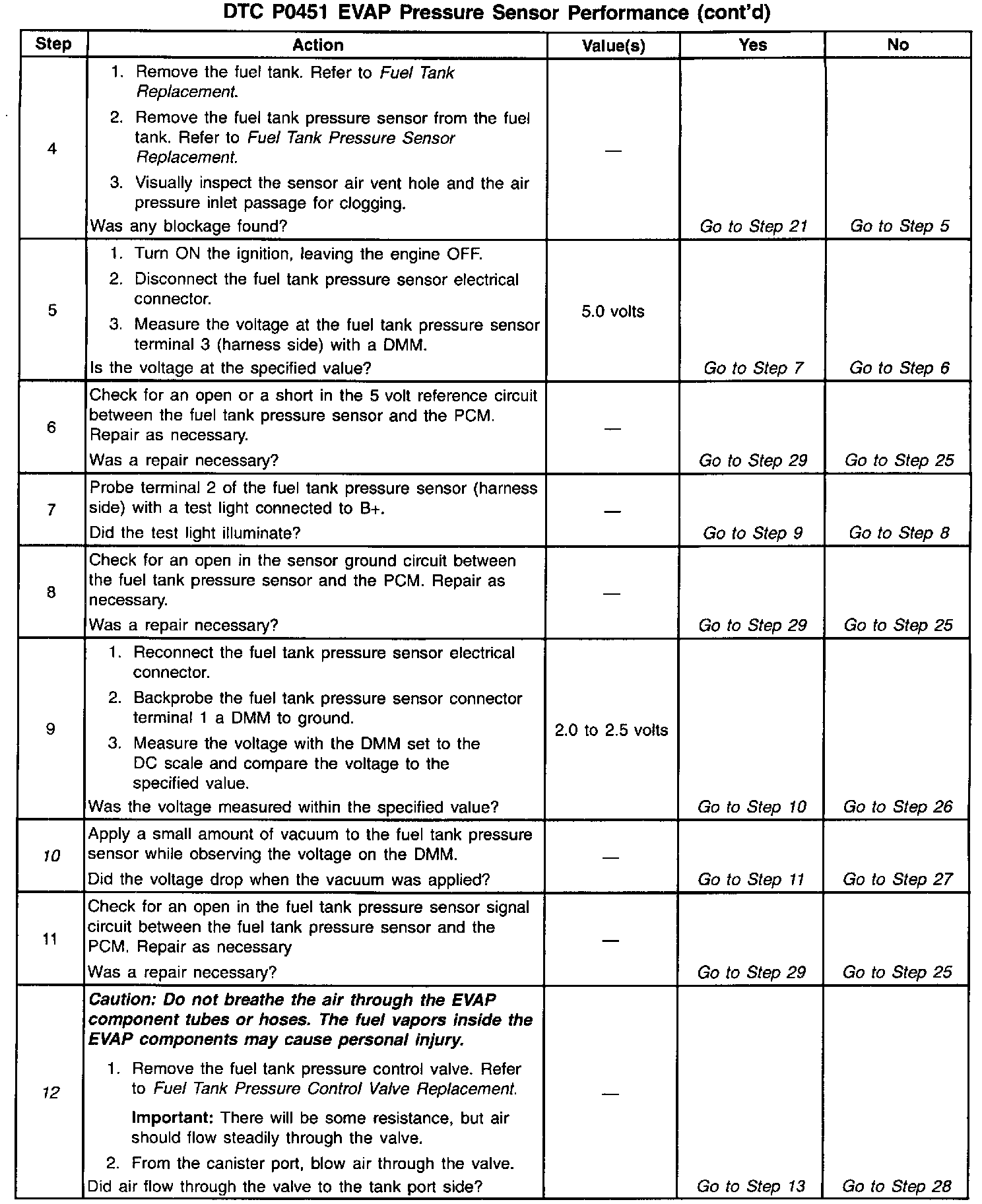 ^ A shifted (incorrectly calibrated) fuel tank pressure sensor may cause a P0451 to set. Compare voltage readings with a known good sensor
