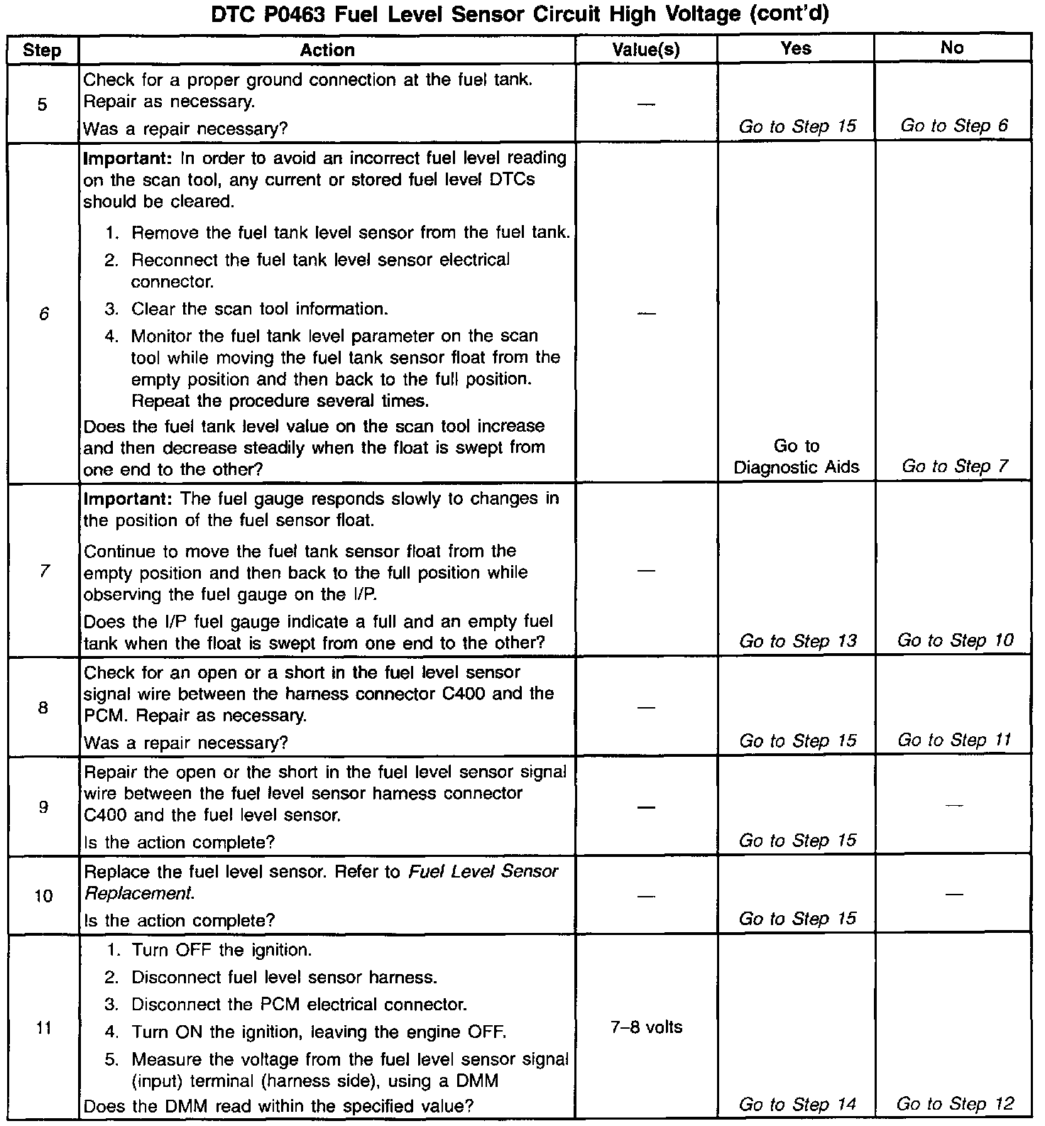 7. Checks for a faulty fuel level sensor.