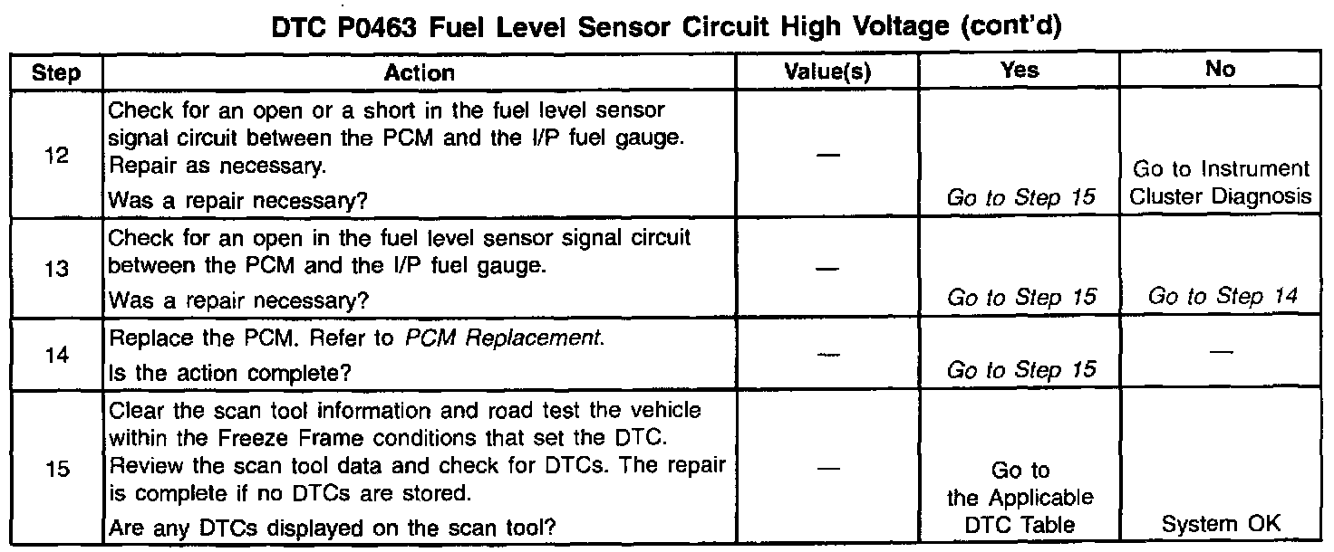 If the DTC P0463 cannot be duplicated, the information included in the Freeze Frame data can be useful in determining vehicle operating conditions when the DTC was first set.