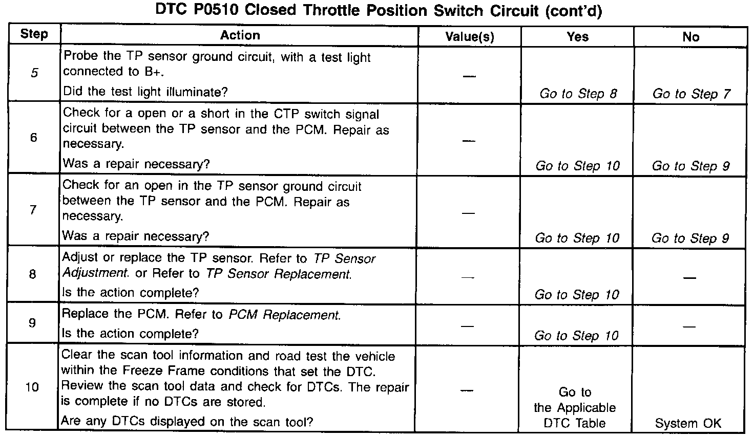 If the DTC P0510 cannot be duplicated, the information included in the Freeze Frame data can be useful in determining vehicle operating conditions since the DTC was first set.