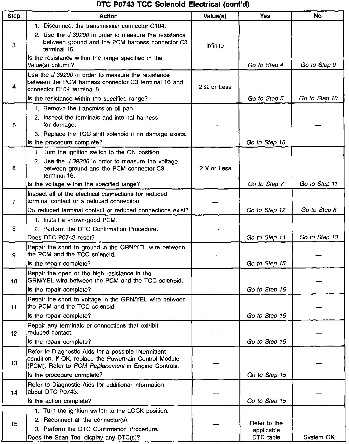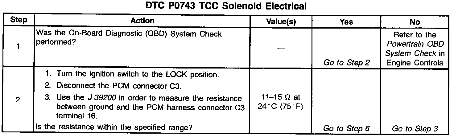 2. This step tests the TCC solenoid internal coil resistance.