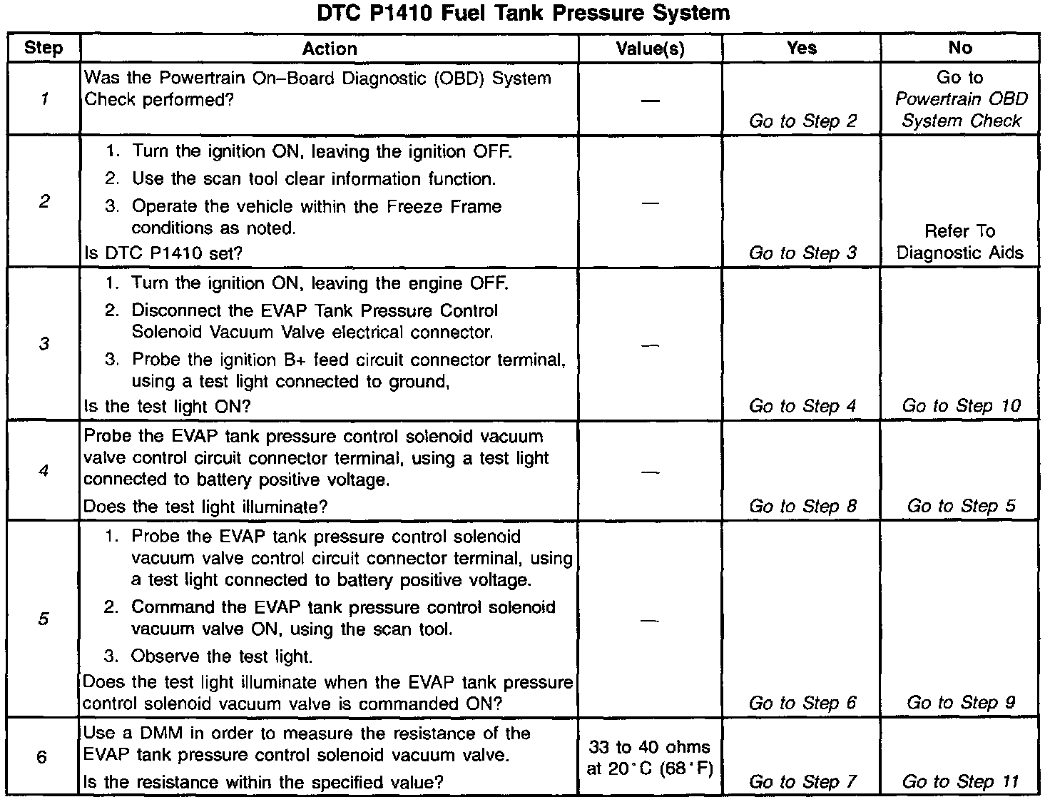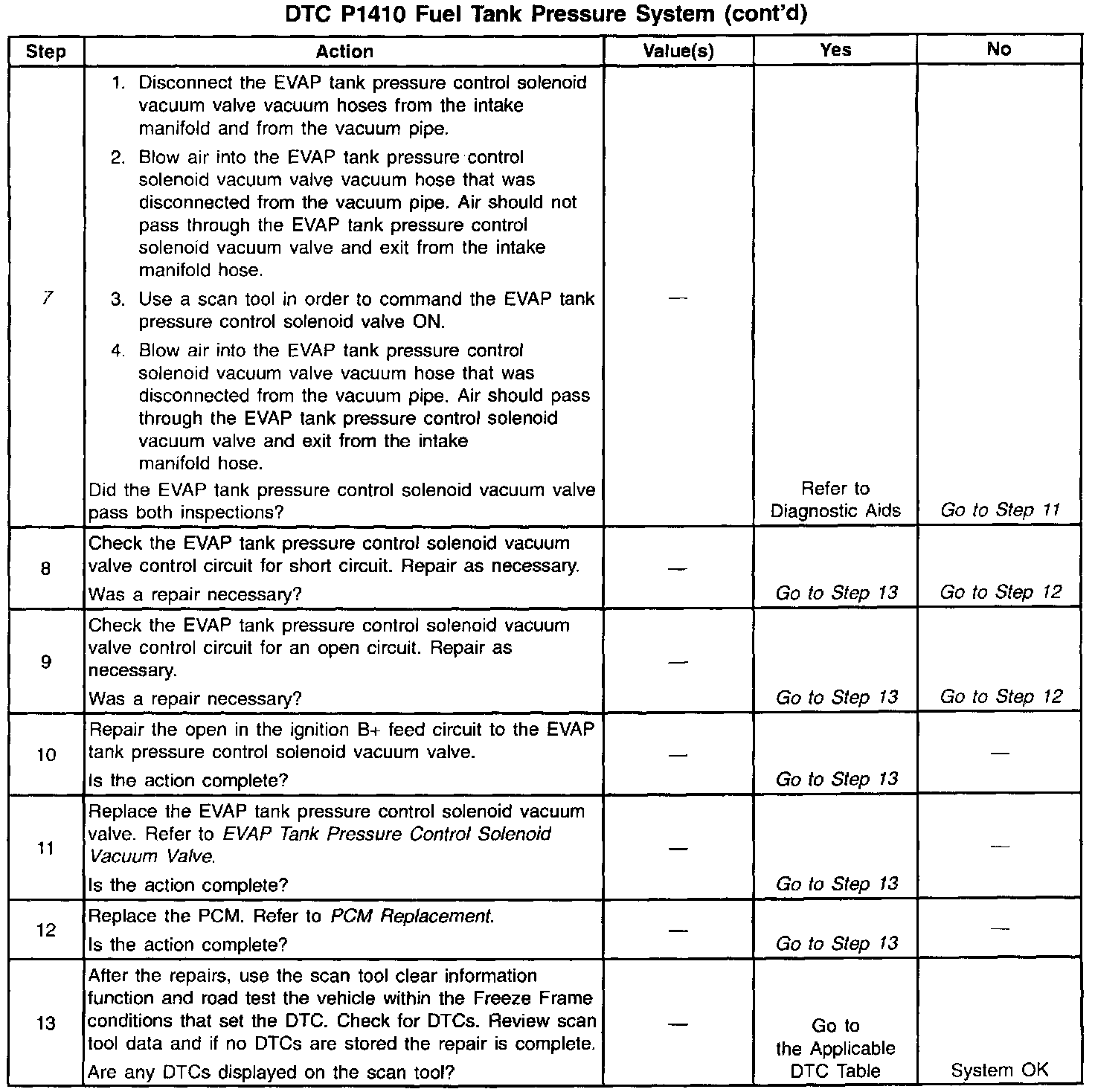 7. This step checks the operation of the EVAP tank pressure control solenoid vacuum valve.
