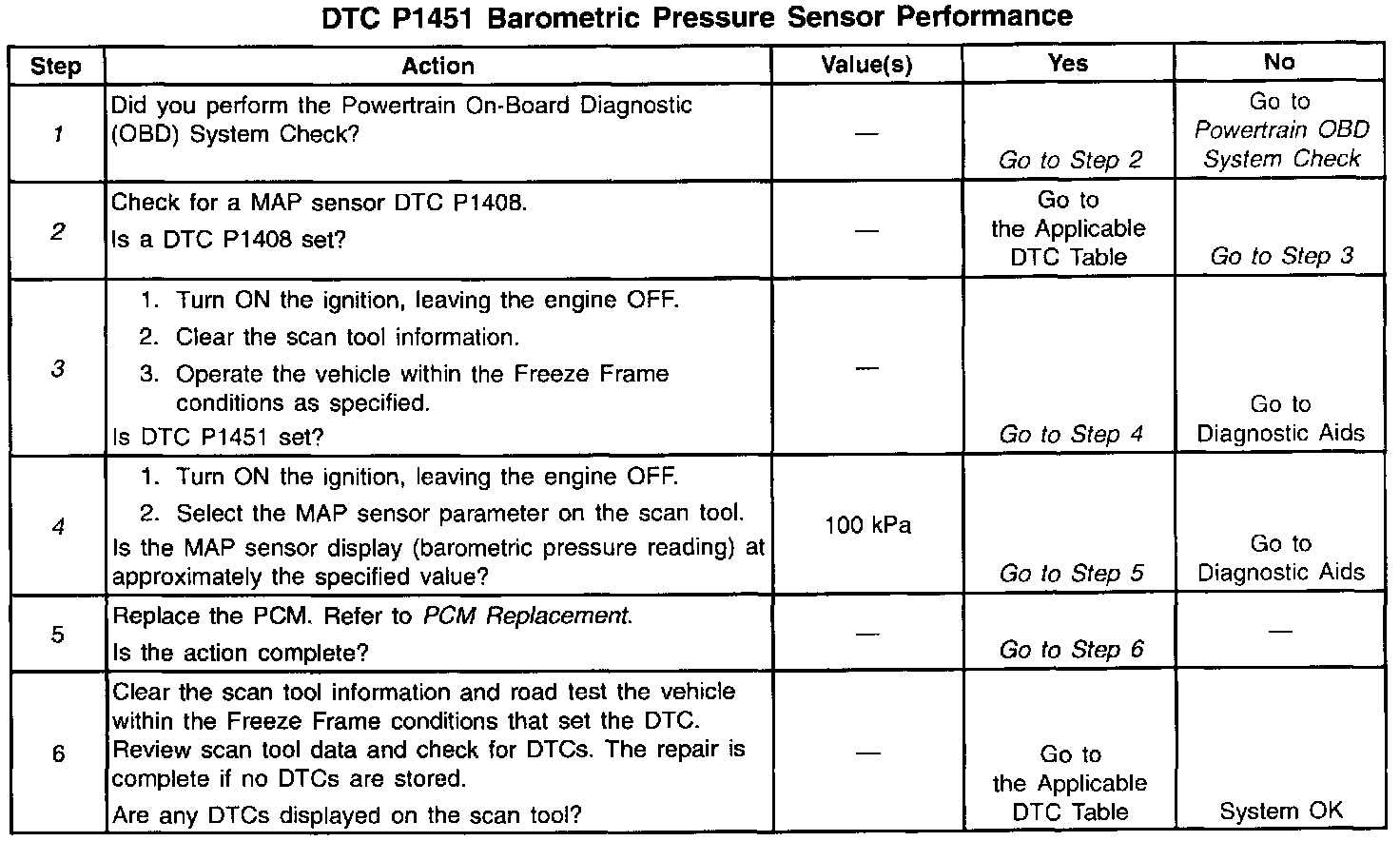 If a DTC P1451 cannot be duplicated, the information included in the Freeze Frame data can be useful in determining vehicle operating conditions when the DTC was first set.