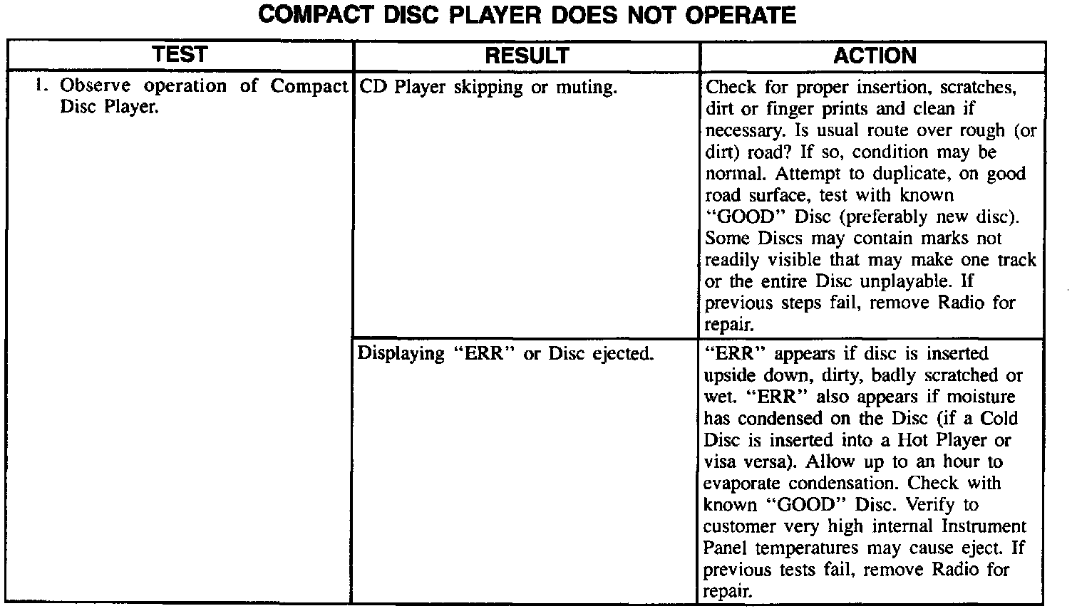 Compact Disc Player Inoperative