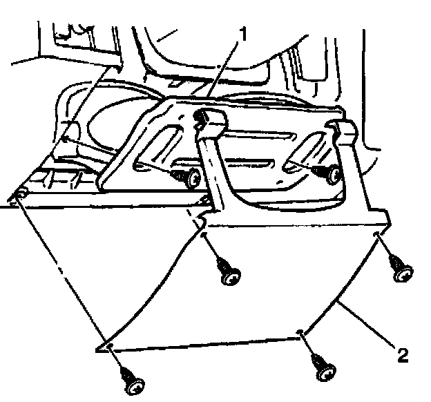 Install the knee bolster trim panel (2). Secure the trim panel with the 2 clips and the 4 screws.