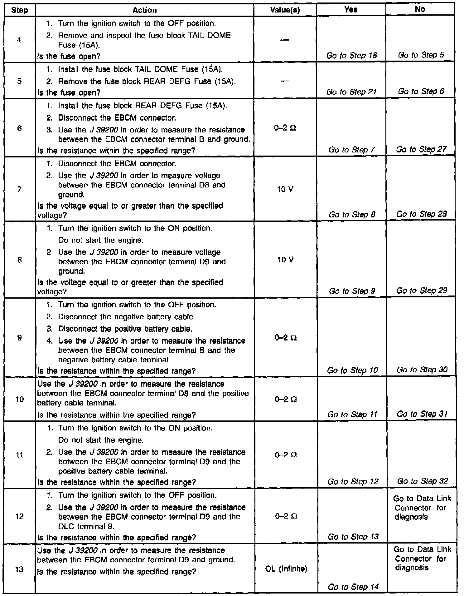 IMPORTANT: Zero the J 39200 test leads before making any resistance measurements. Refer to the J 39200 user's manual.