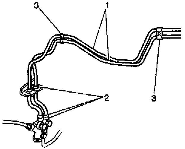 2. Disconnect the pipe(s) (1) to be replaced at each fitting.