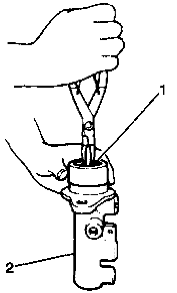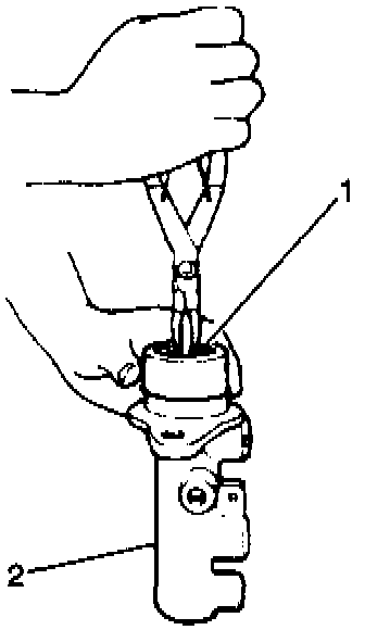 4. Compress the pistons and install the snap ring (1).