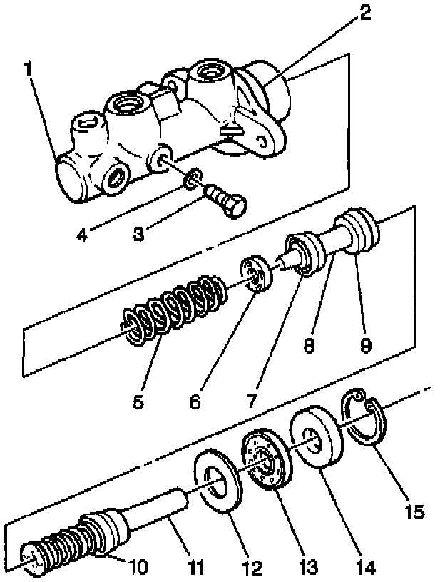 - The master cylinder internal parts for wear. Replace the master cylinder if the wear is excessive.