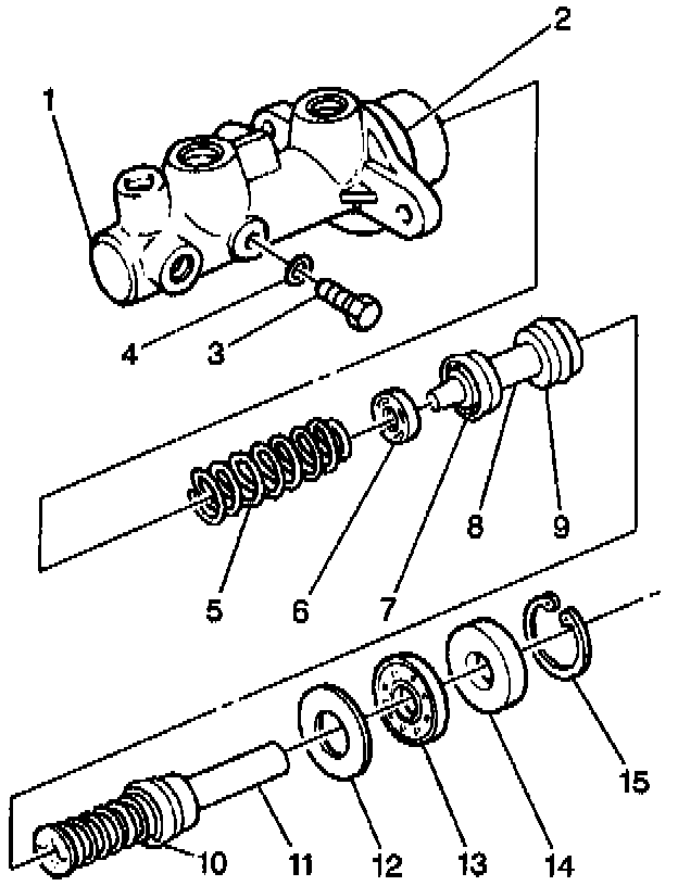 IMPORTANT: Replacement internal parts for the master cylinder are available only as a complete piston set. Should any of the master cylinder internal parts need to be replaced, replace them all.
