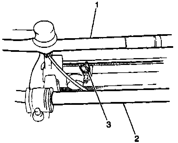 2. Secure the radiator outlet pipe (2) to the vehicle with one bolt in the outlet pipe support.