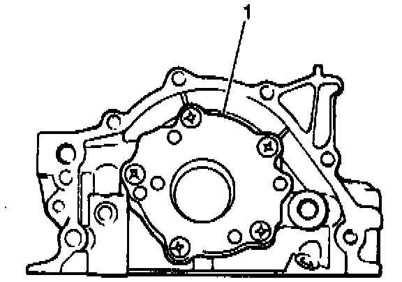1. Remove the five screws and the gear plate (1) from the oil pump body.