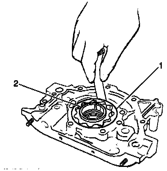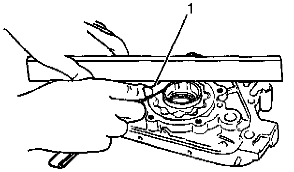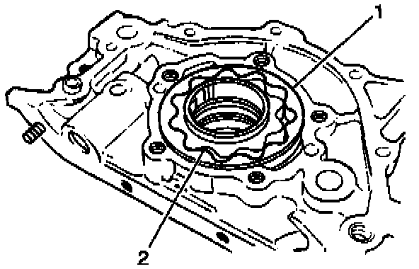 4. Measure the radial clearance between the oil pump outer gear (1 ) and the oil pump body using a feeler gage.