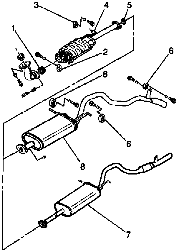 6. Remove the muffler/tail pipe assembly from the vehicle.