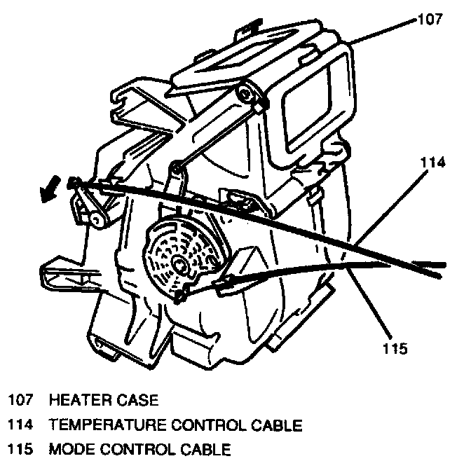 3. At heater case, push door lever fully clockwise (forward) to affix cable into position.