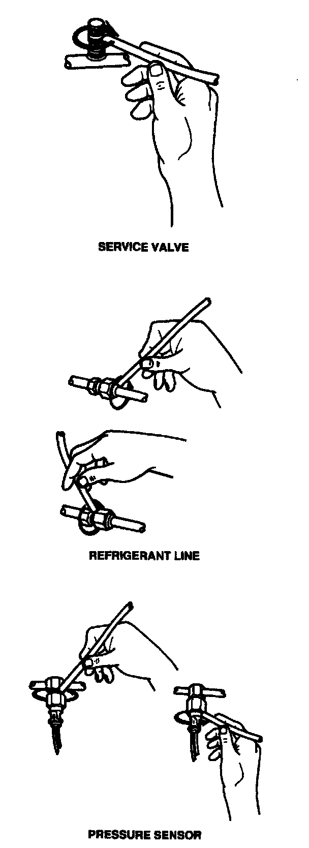 ^ Always follow the refrigerant system around in a continuous path so that no leaks are missed. Always test all the above areas to assure the entire system is leak free, even when one leak is already found.